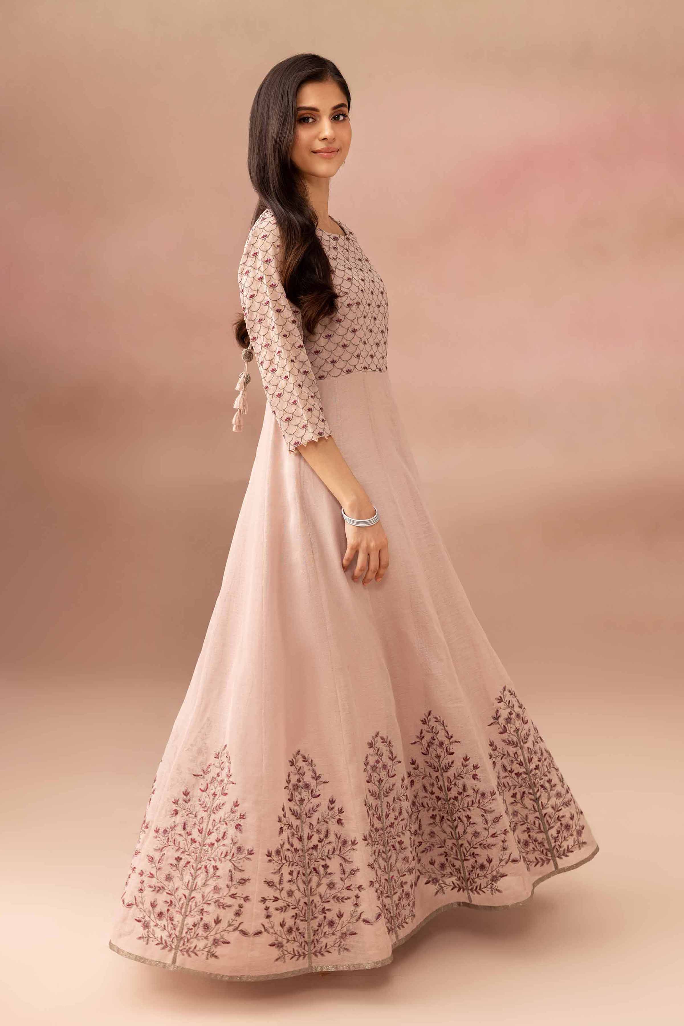 Nishat Boutique has nailed the art of laid-back luxury with their long dresses online that feature clean silhouettes, airy fabrics, and just enough detail to keep things interesting. The Printed Embroidered Jacquard Sage Long Dress is ideal for day events, while the Embroidered Coral Pink Chiffon Dress With Dupatta works for anything from dholkis to Eid brunches. They’re fun, flowy, and feel like a fashion win every time.