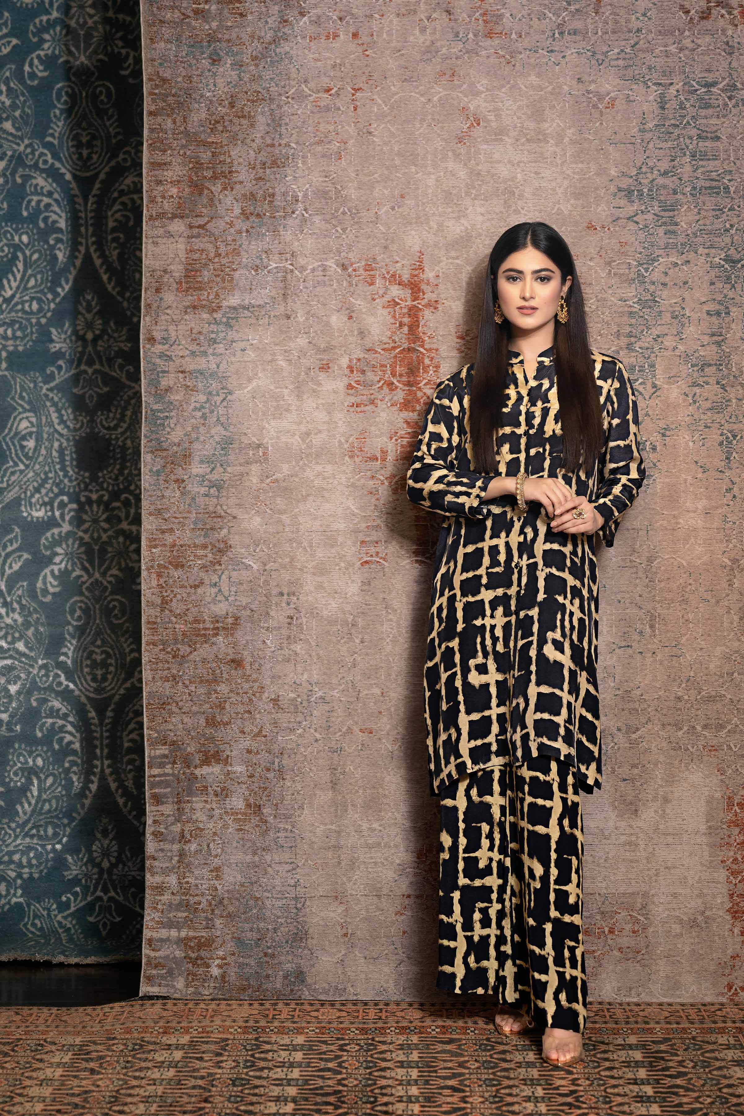 - Palazzo Suits: This style is trending in those girls who want comfort and airy clothes. Nishat Boutique made stitched suits for women that wide-legged pants paired with short or long kurta, perfect for chic look.