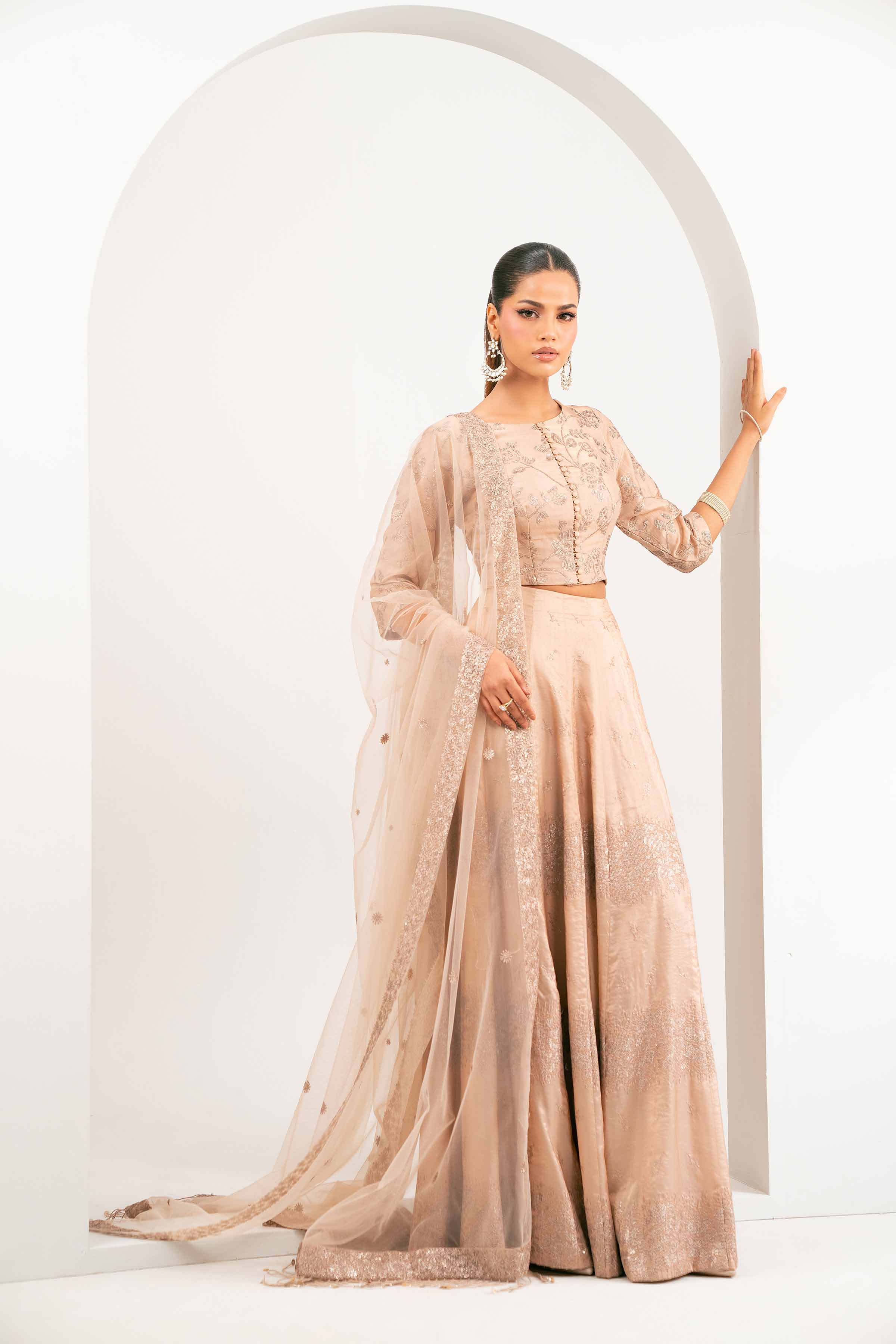 Our collection includes traditional and modern styles. From lavishly embroidered bridal lehengas to elegant, simple shararas, we have versatile options that match your preferences. Want a minimal look? A delicately embroidered sharara and a long kameez are perfect for you. We ensure each piece in our new designer dresses collection carries the charm of a wedding dress. So what's the wait for? Shop your look now.