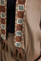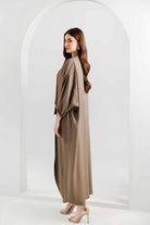 Long Emb Front Open Stylized Kimono Modern Jacket Having Band Gathered Sleeves And Round Hem.