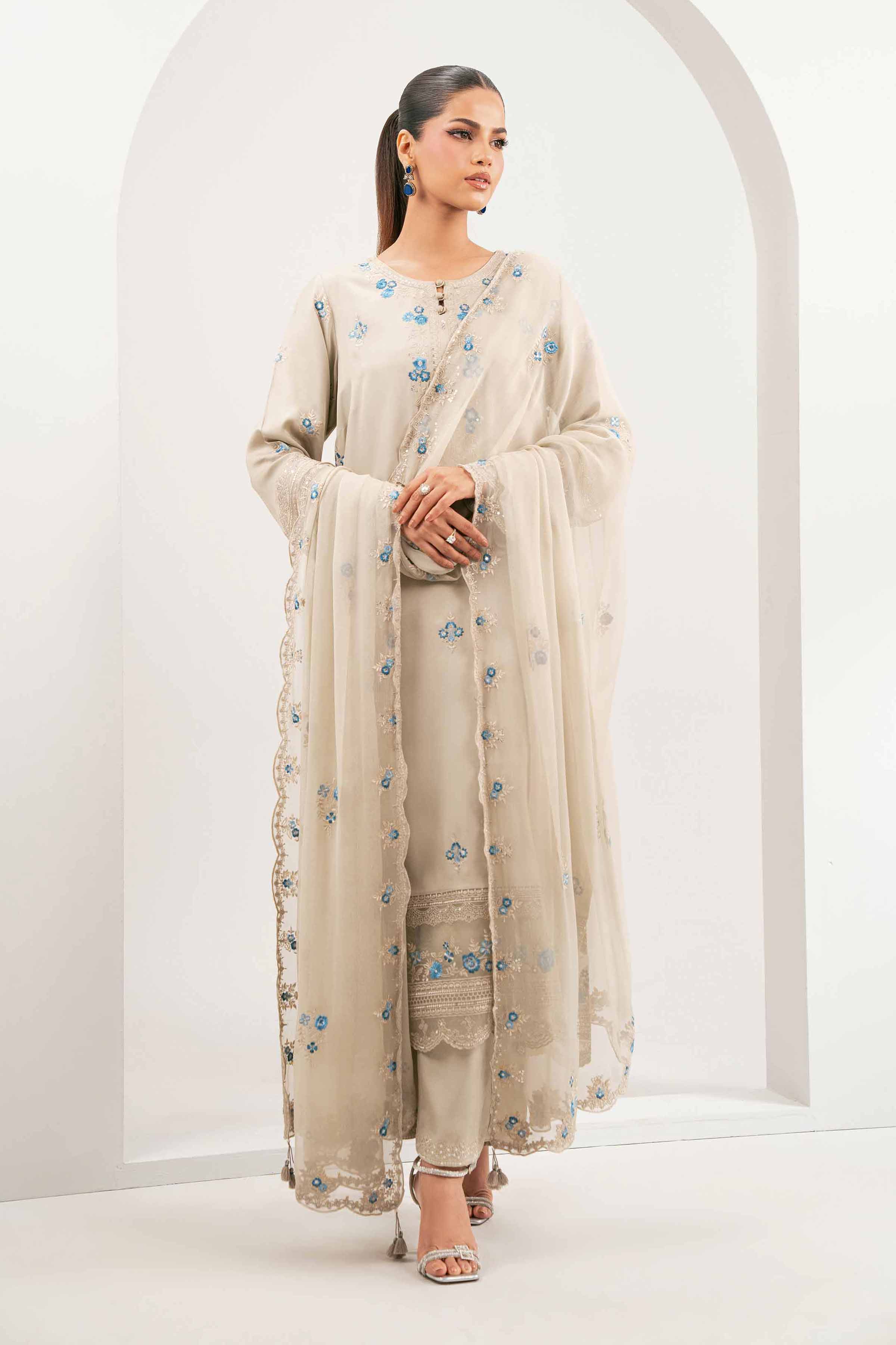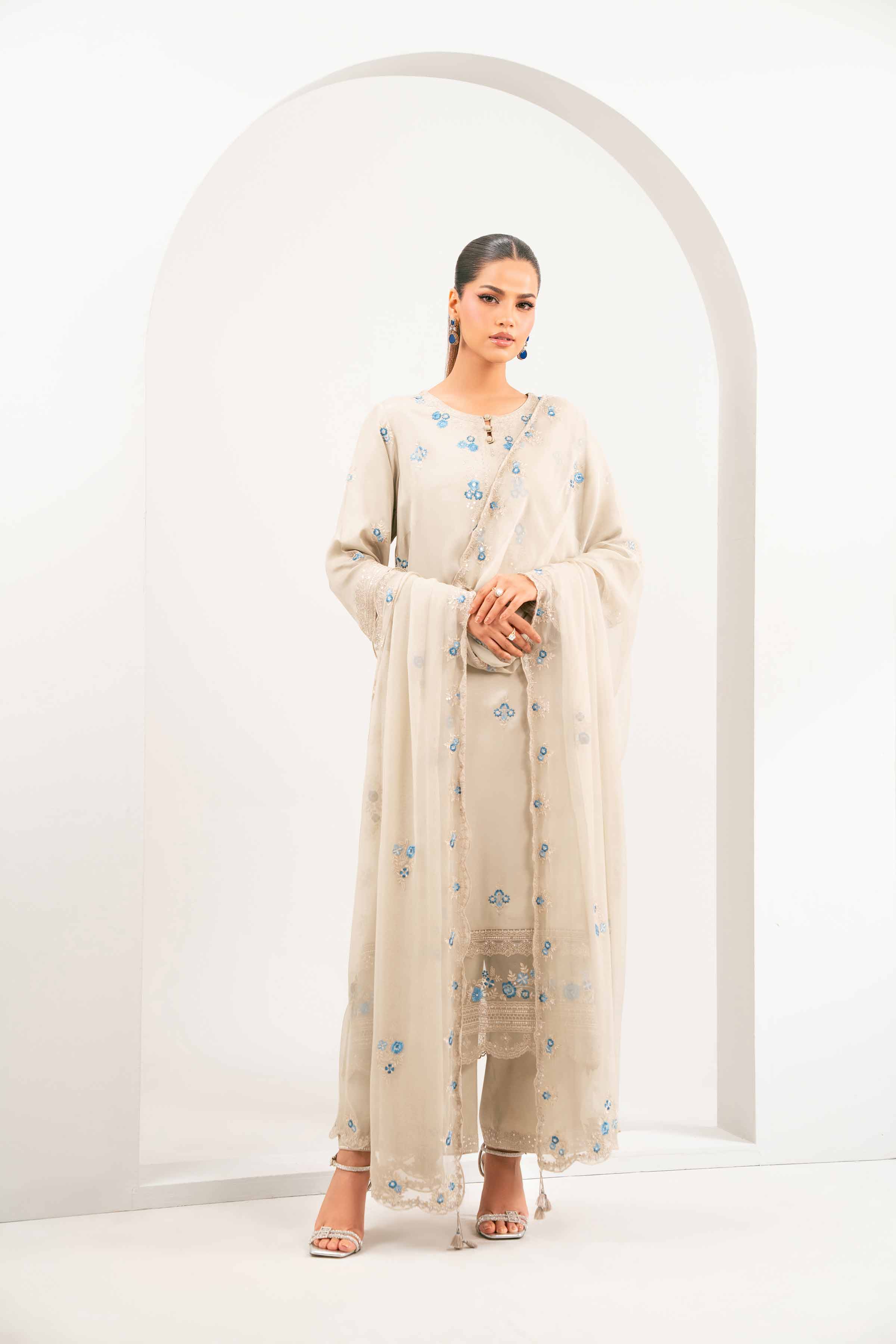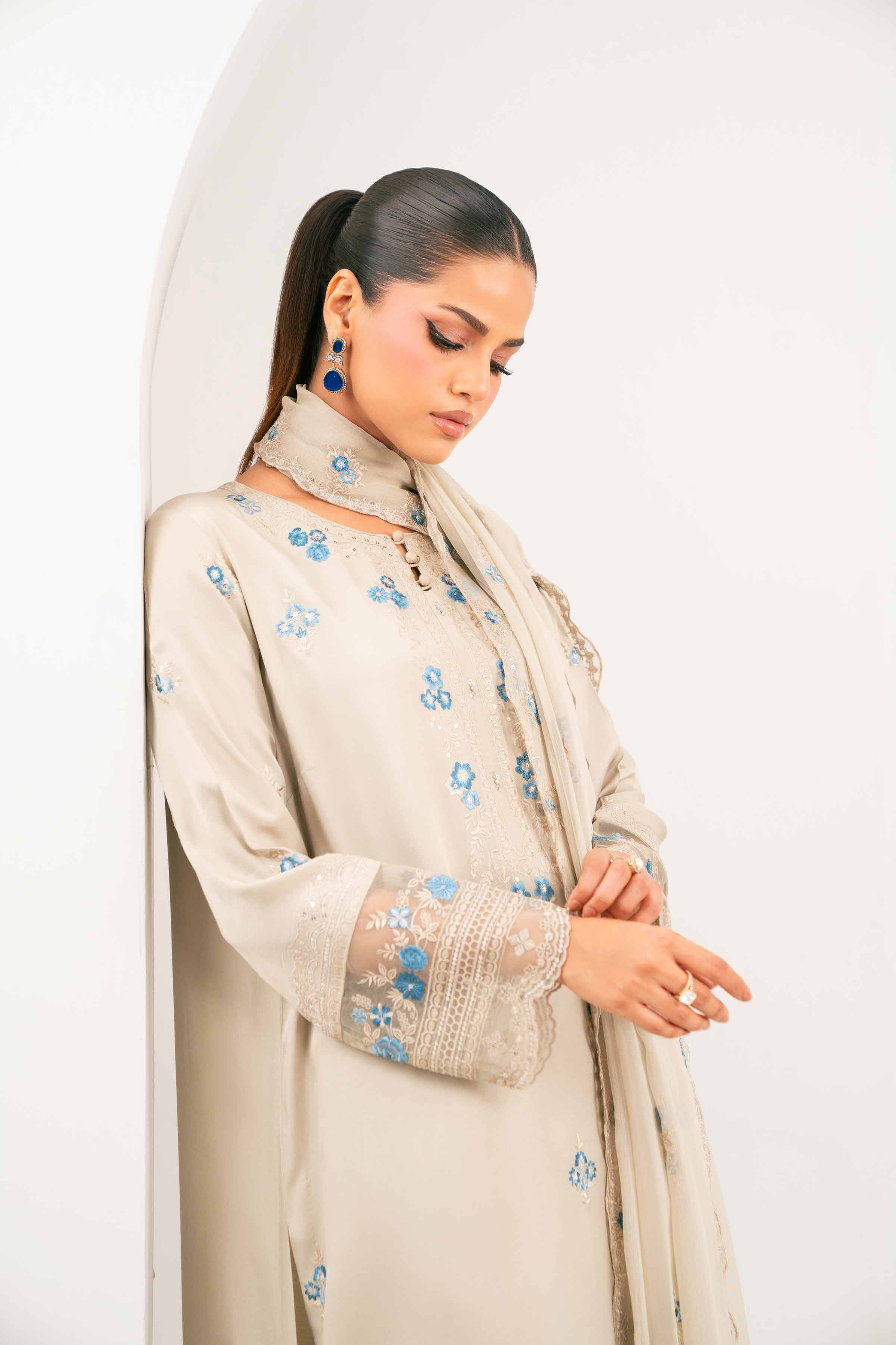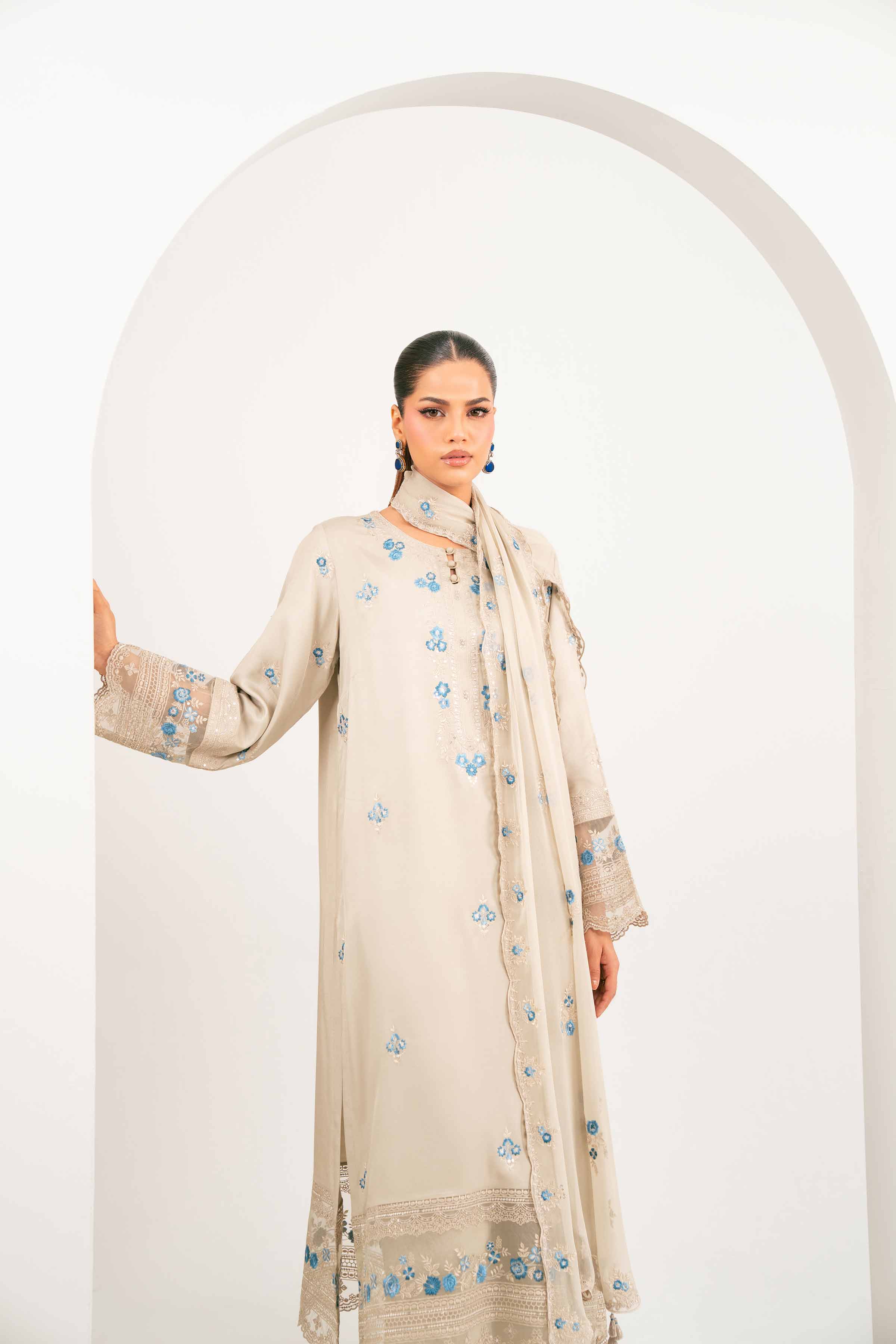 Effortlessly capture hearts with our embroidered three-piece suit from the latest rawayat winter collection.