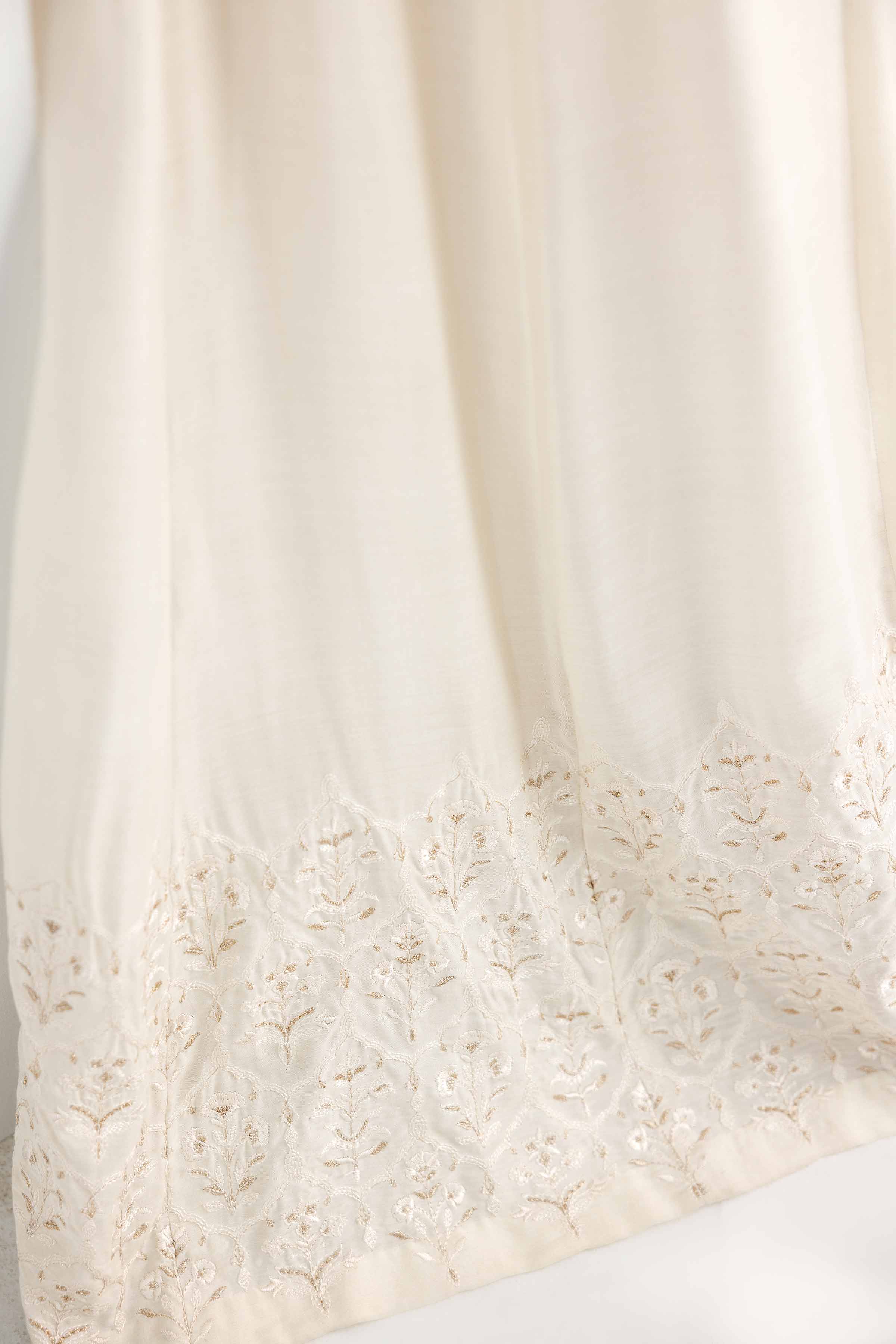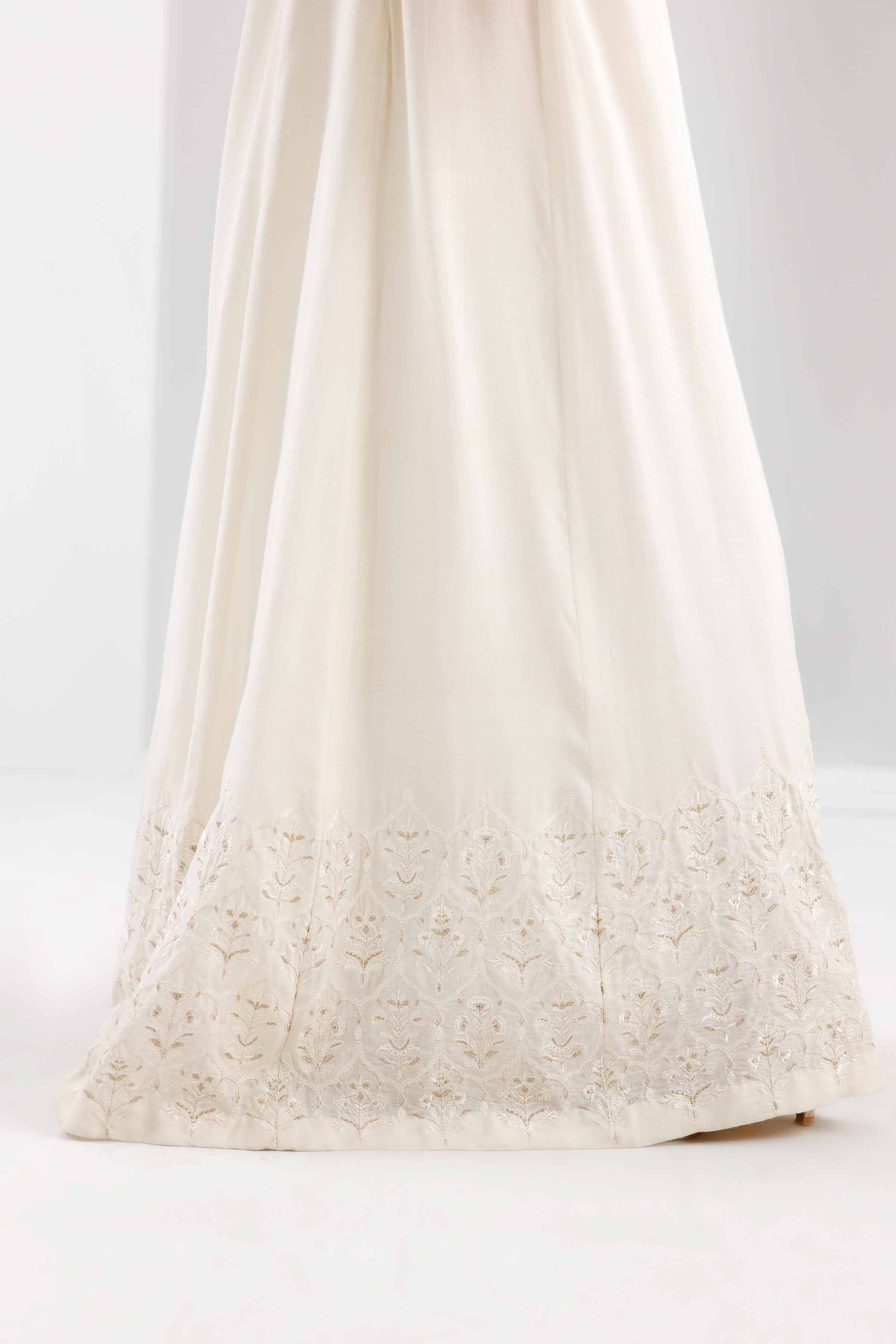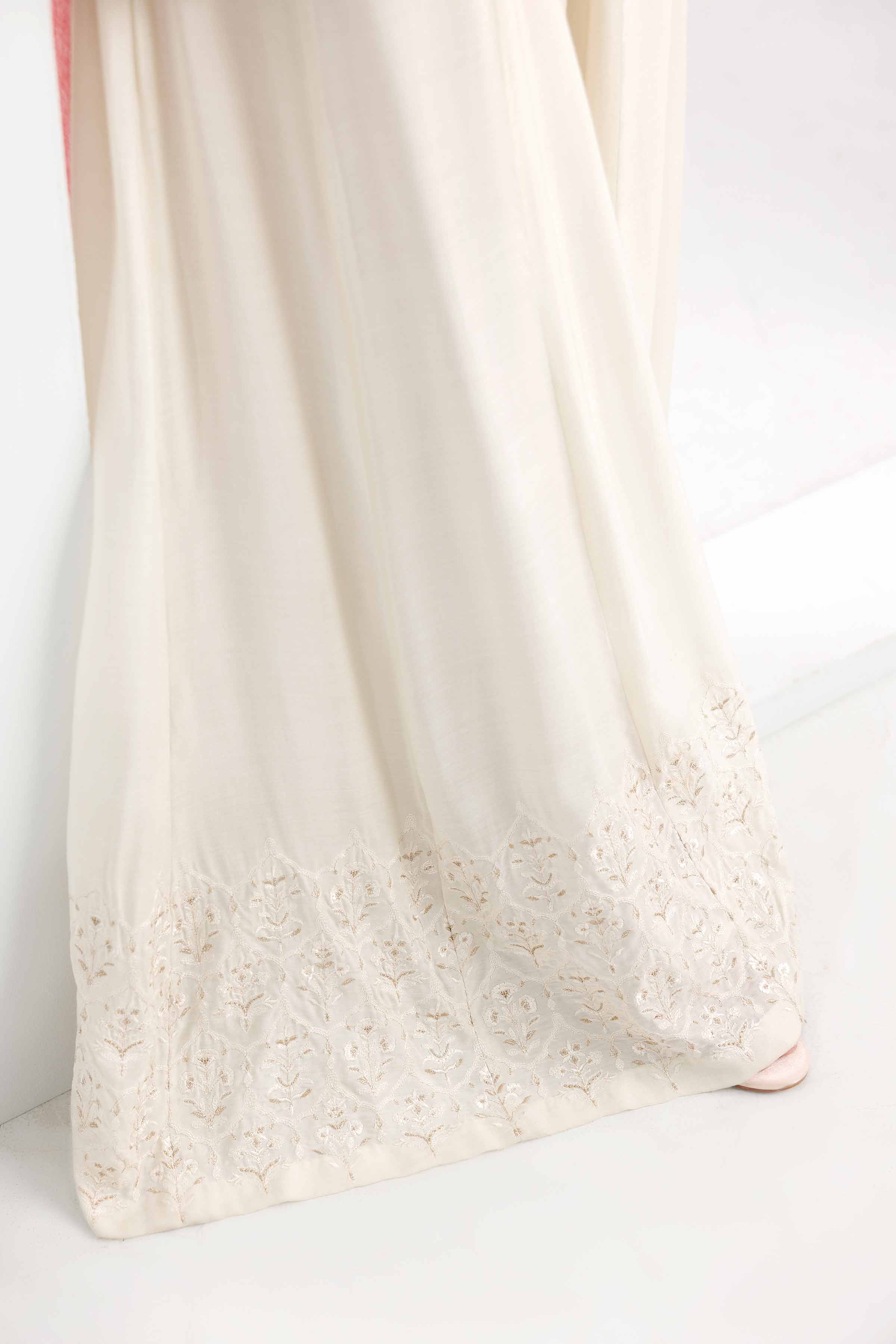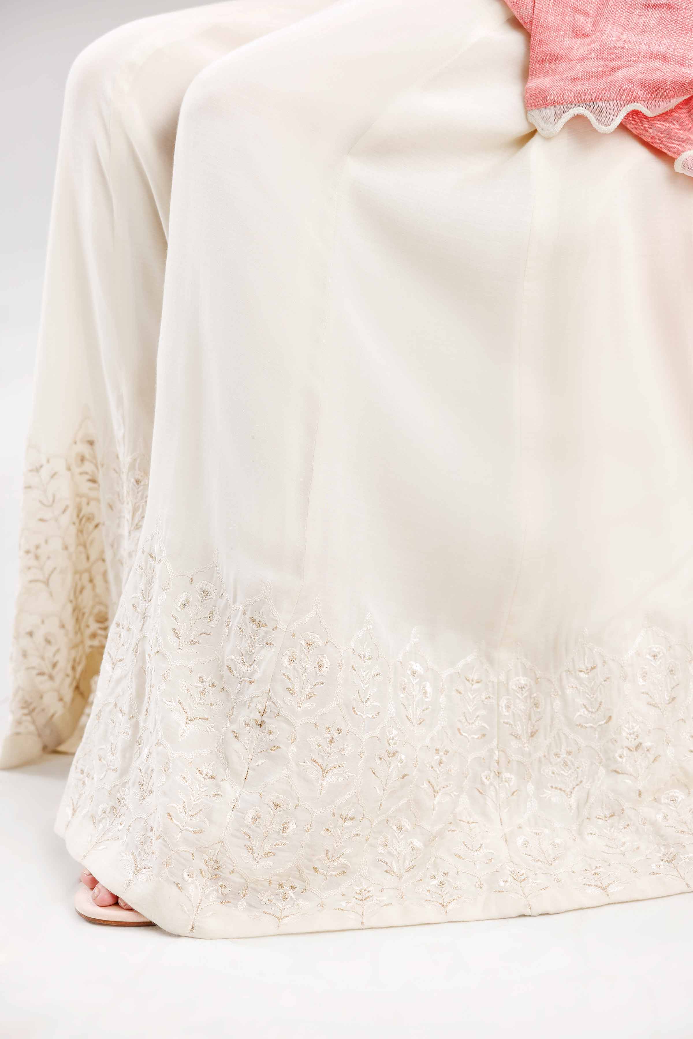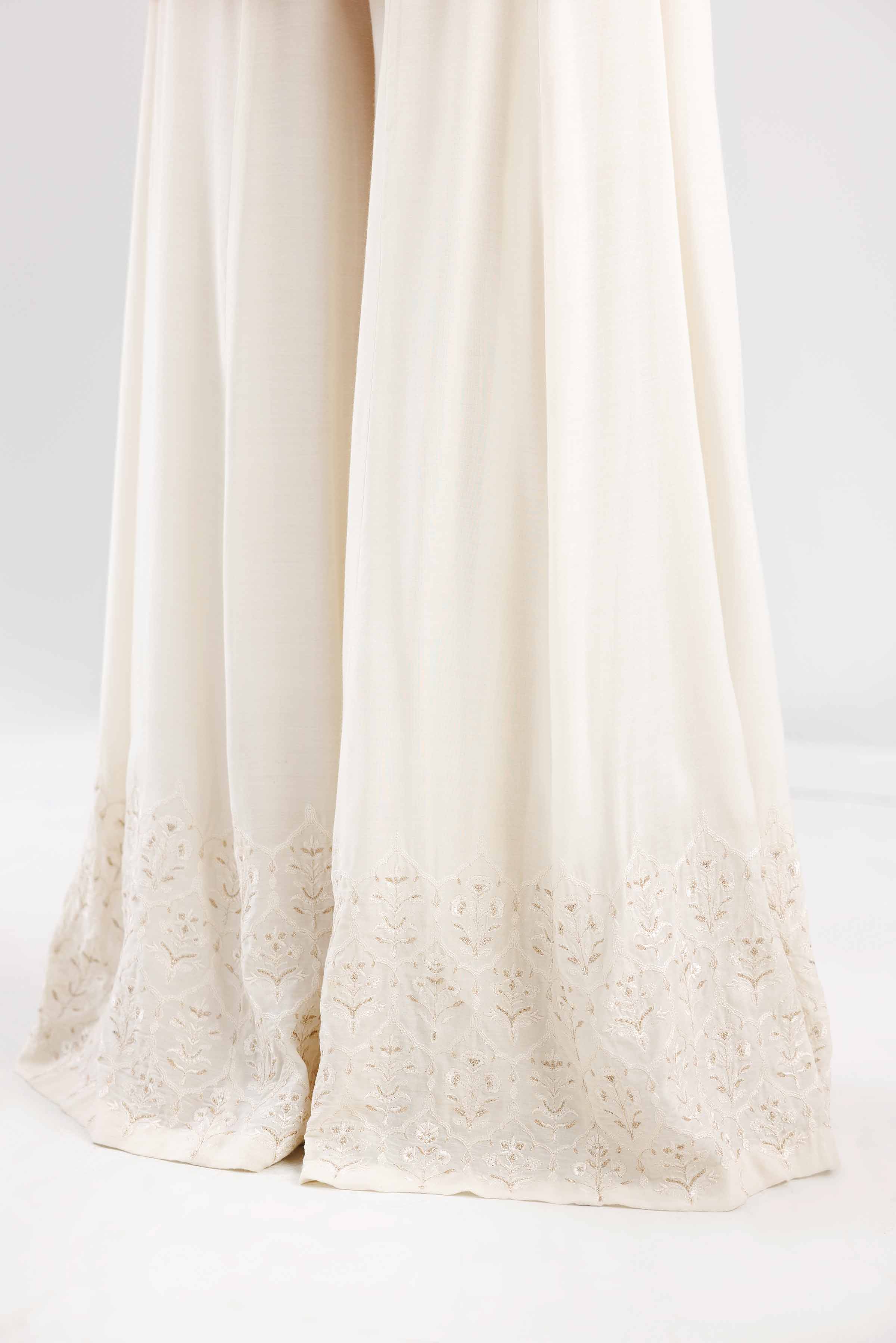 Stand-Alone Ivory Paneled Sharara Enhance With Embroidery On Belt And Hem.