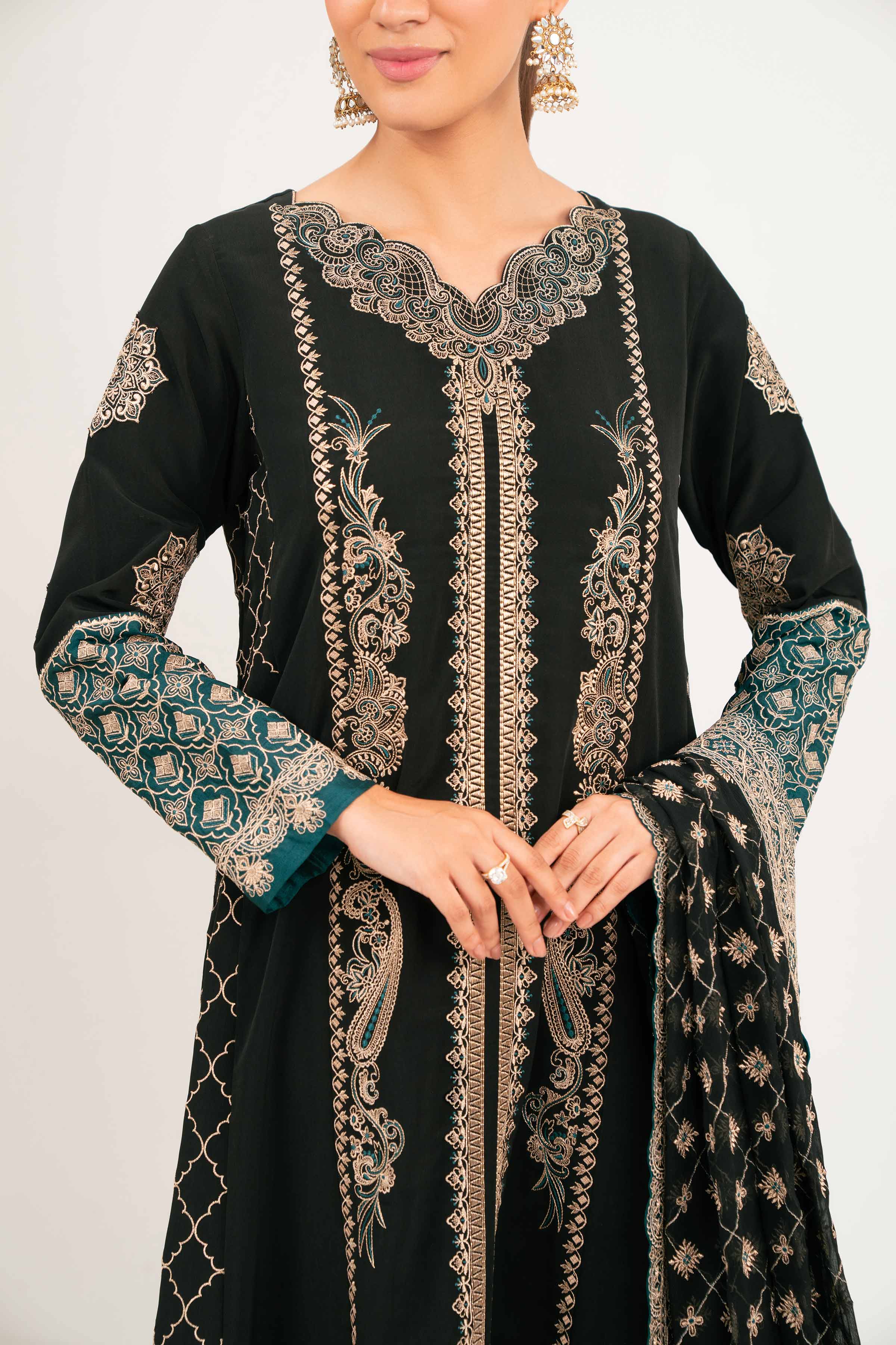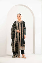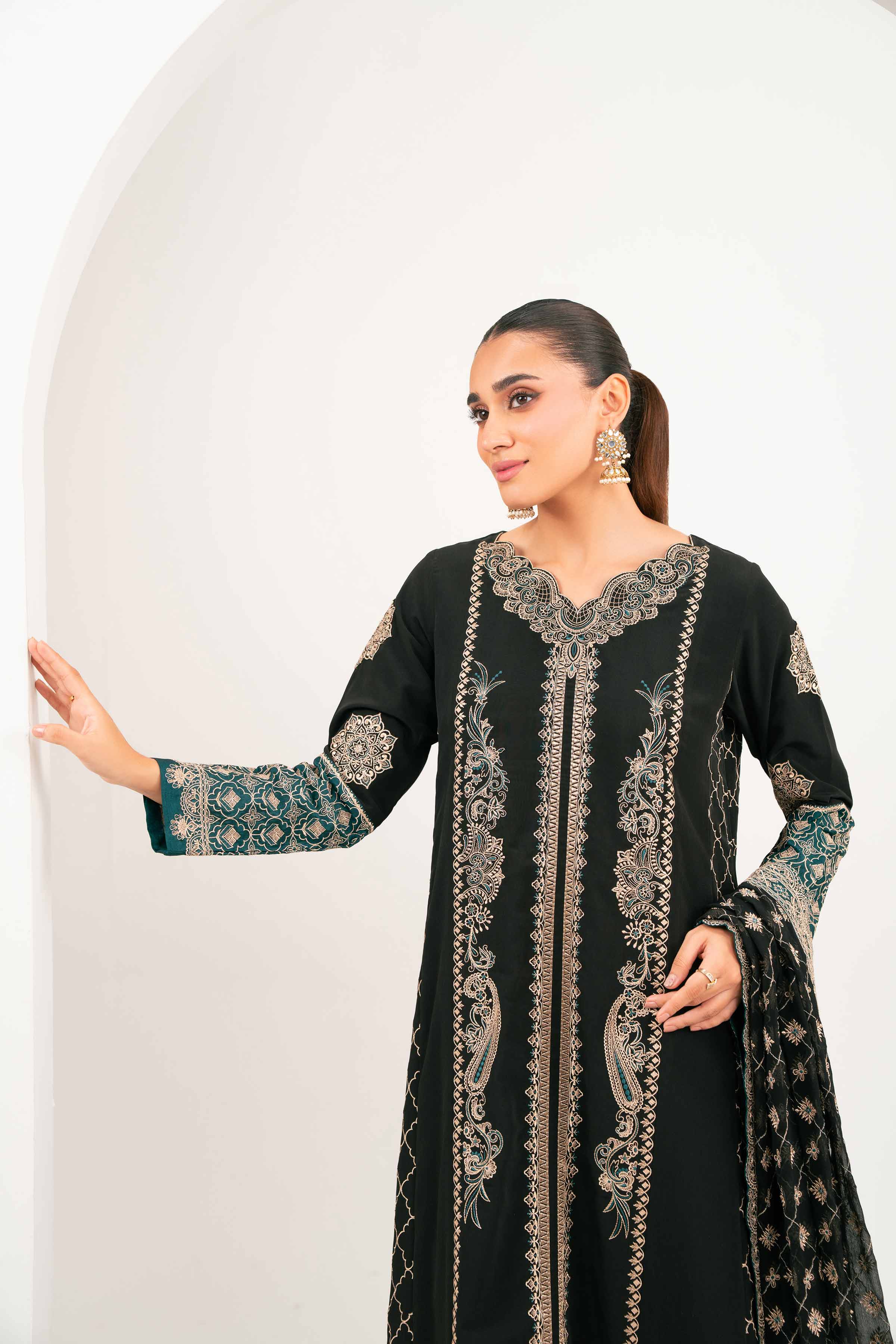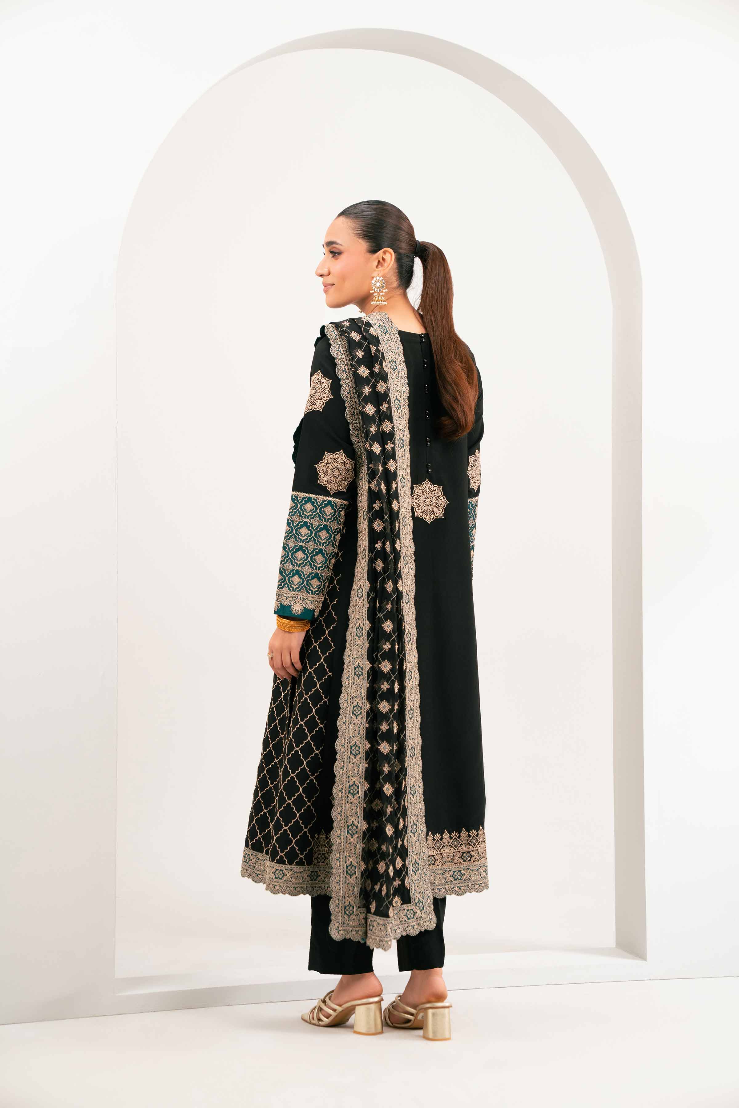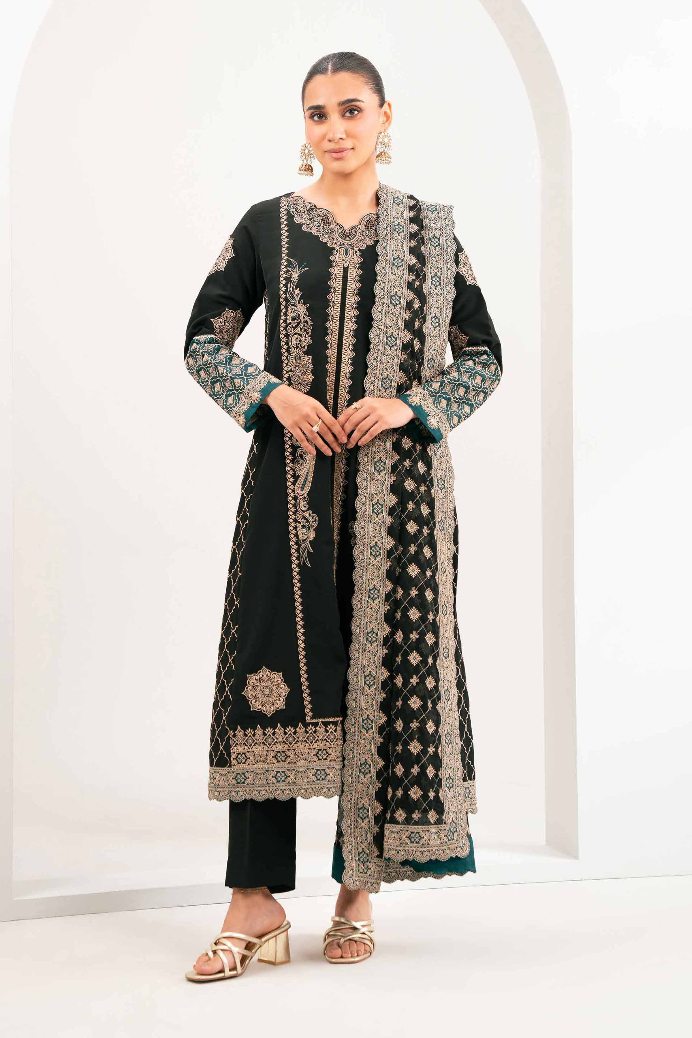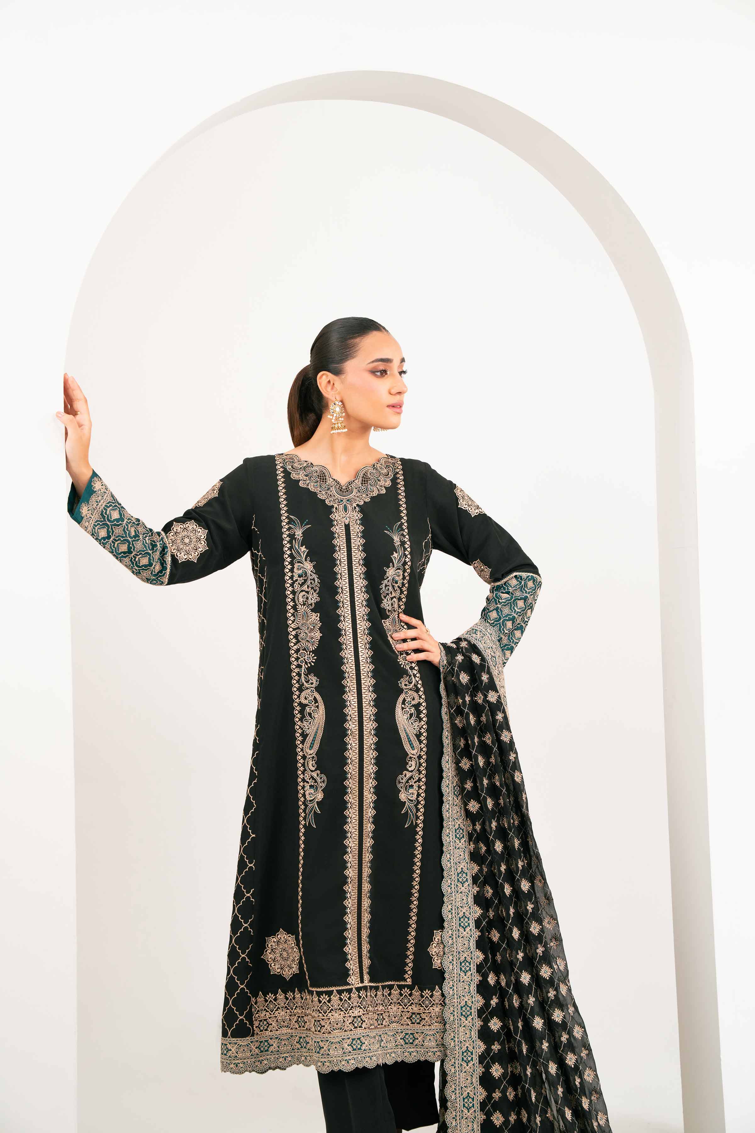 Effortlessly capture hearts with our embroidered three-piece suit from the latest rawayat winter collection.