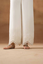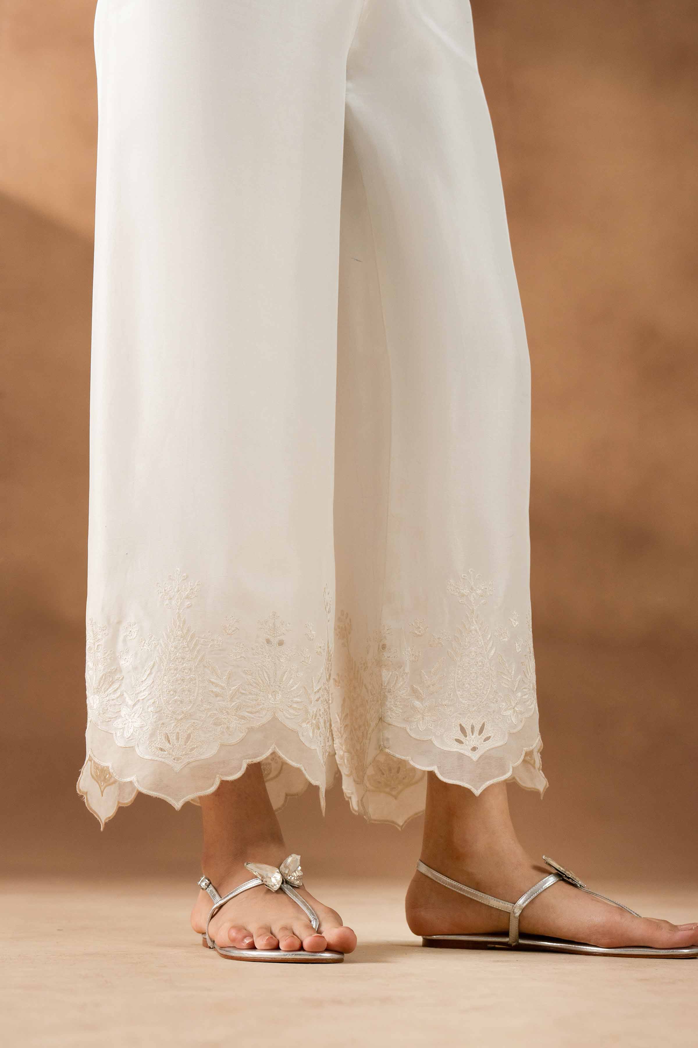 Boring Embroidered Thai Silk Stand Alone Pants Enhanced With Cutwork Organza Insertion At Hem.