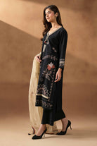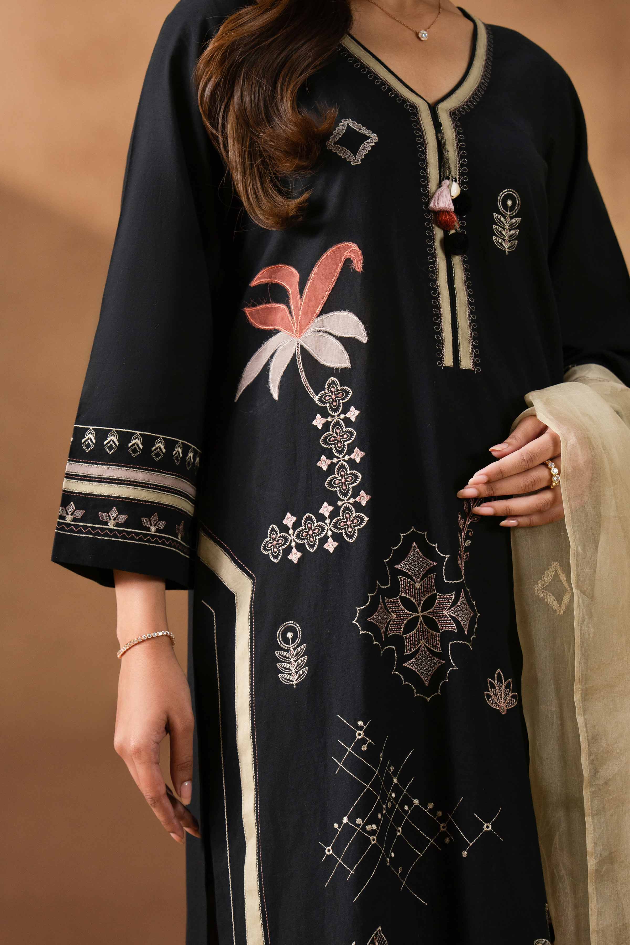 3 Piece Embroidered Long Shirt With Dupatta & Culottes