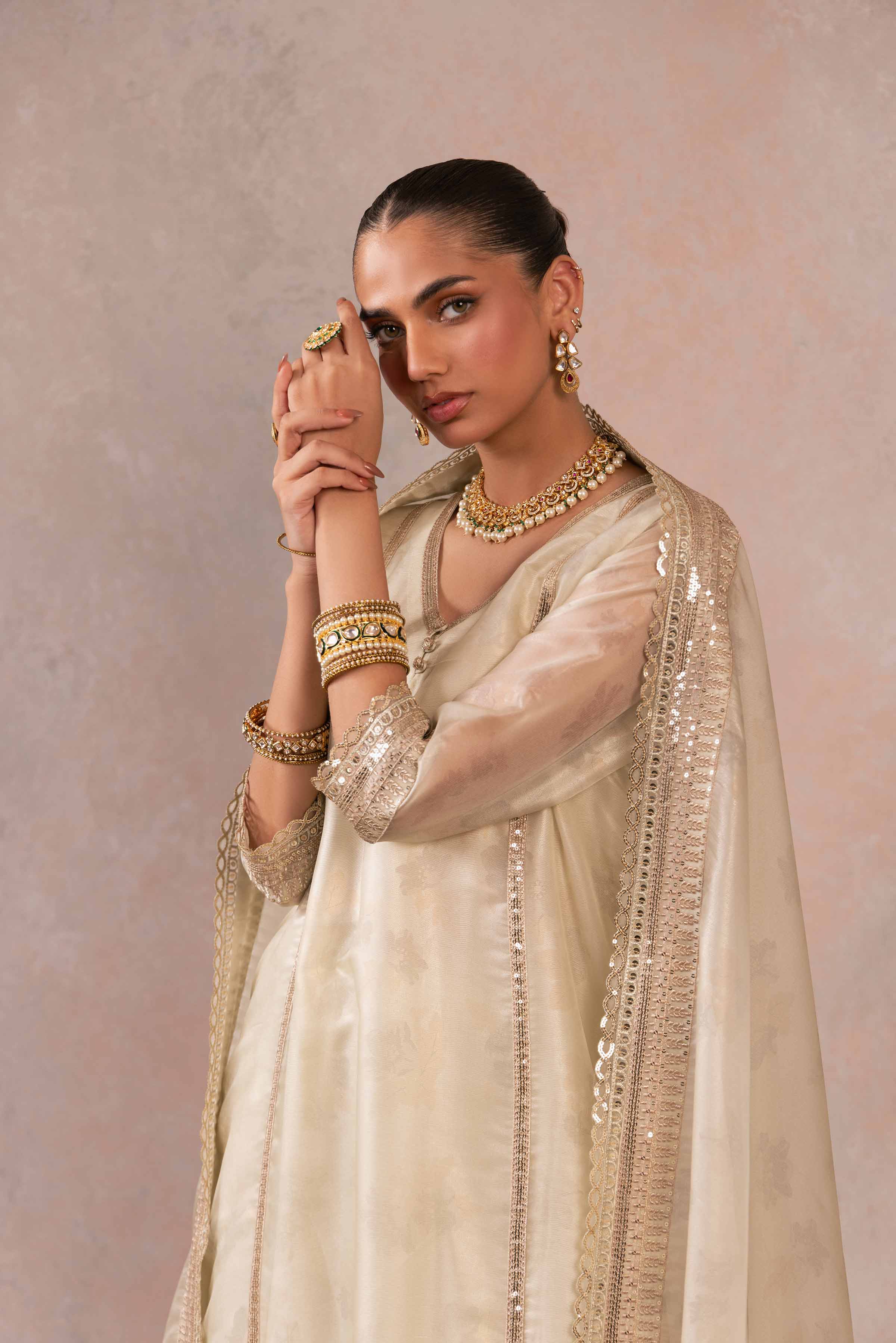 Effortlessly capture hearts by wearing our embroidered three-piece suit from the latest rawayat collection.