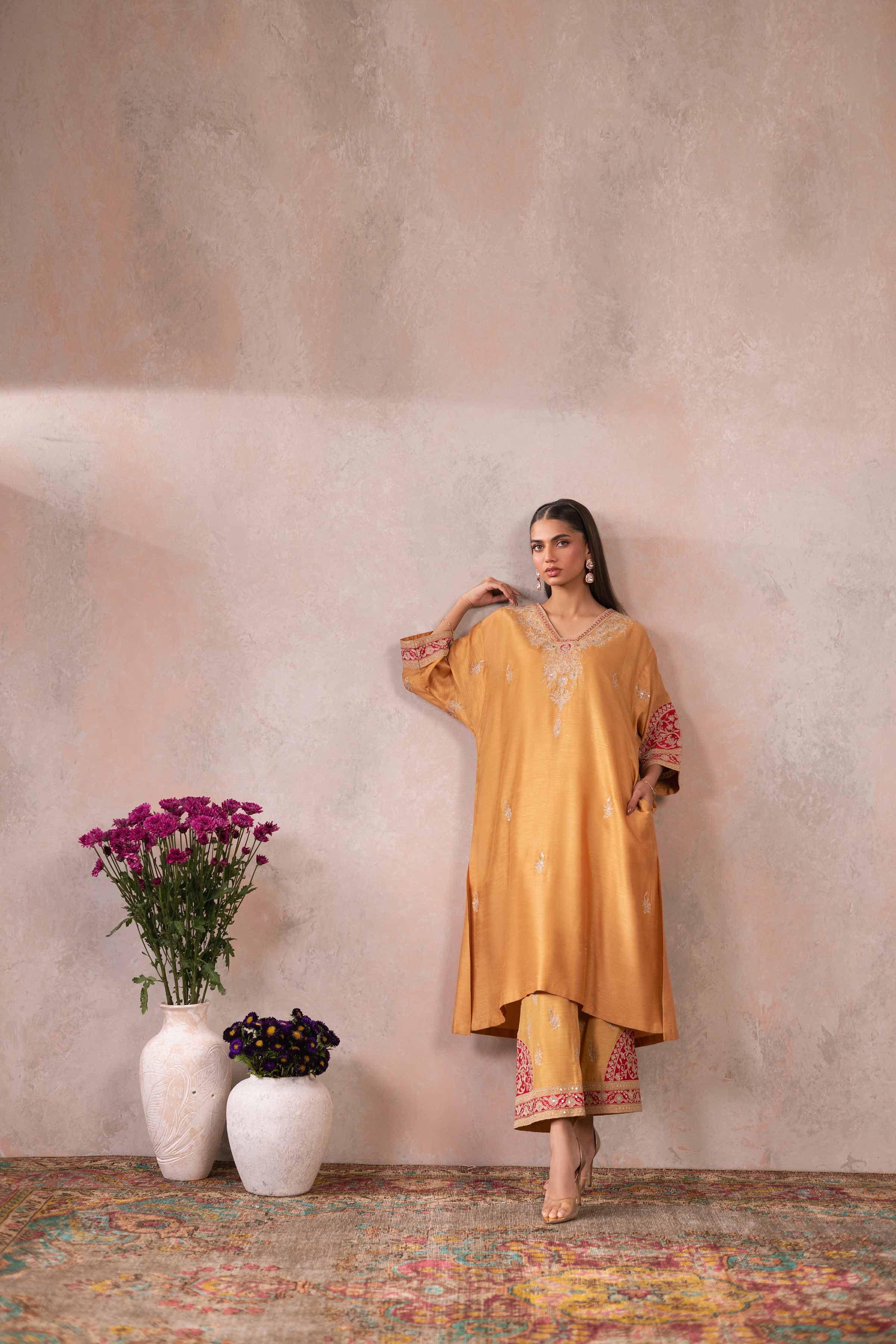 Embroidered Kimono Shirt With Trousers