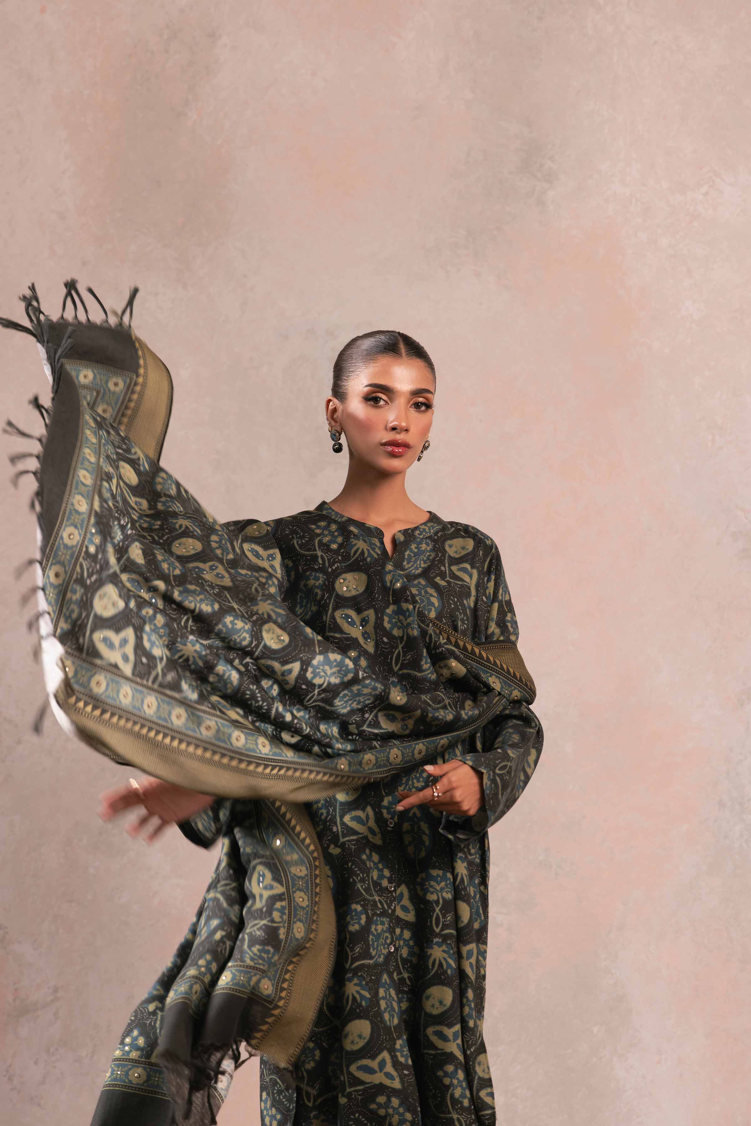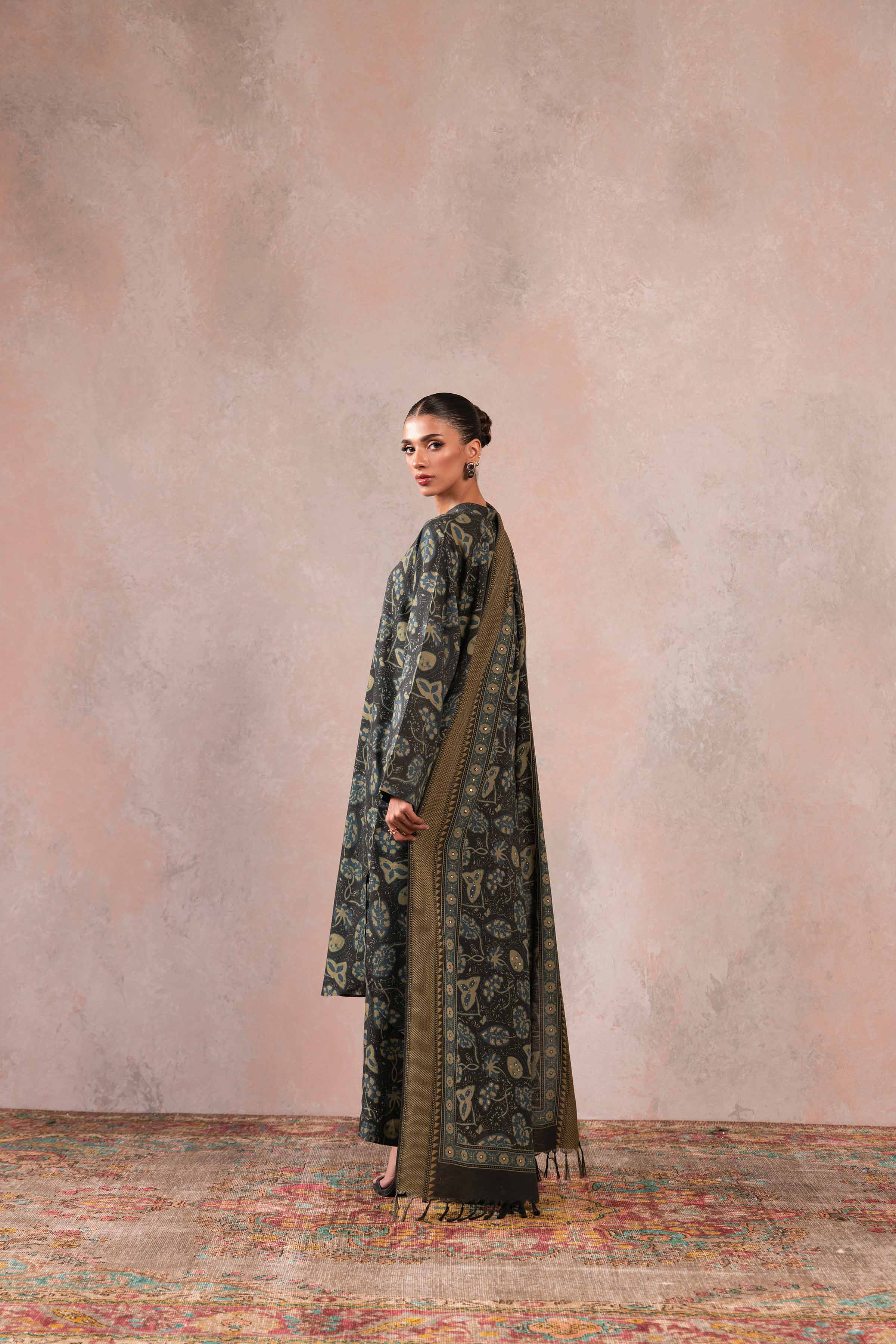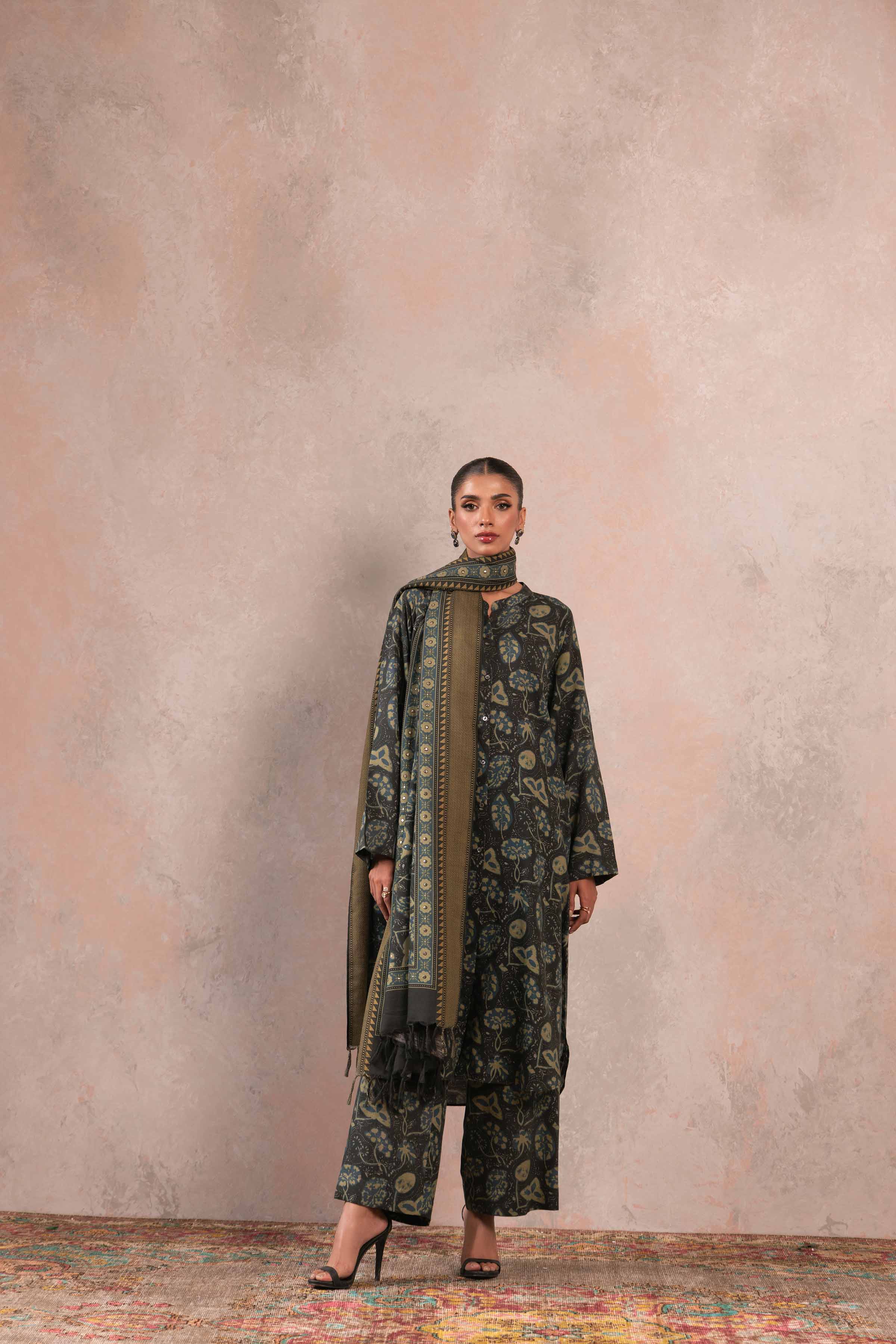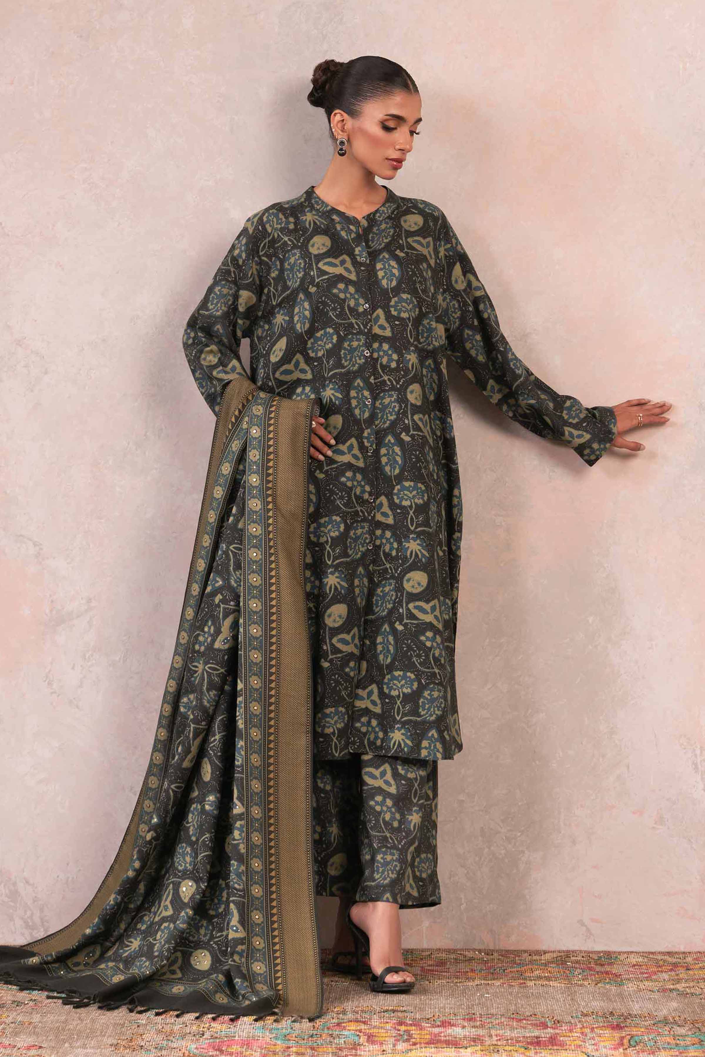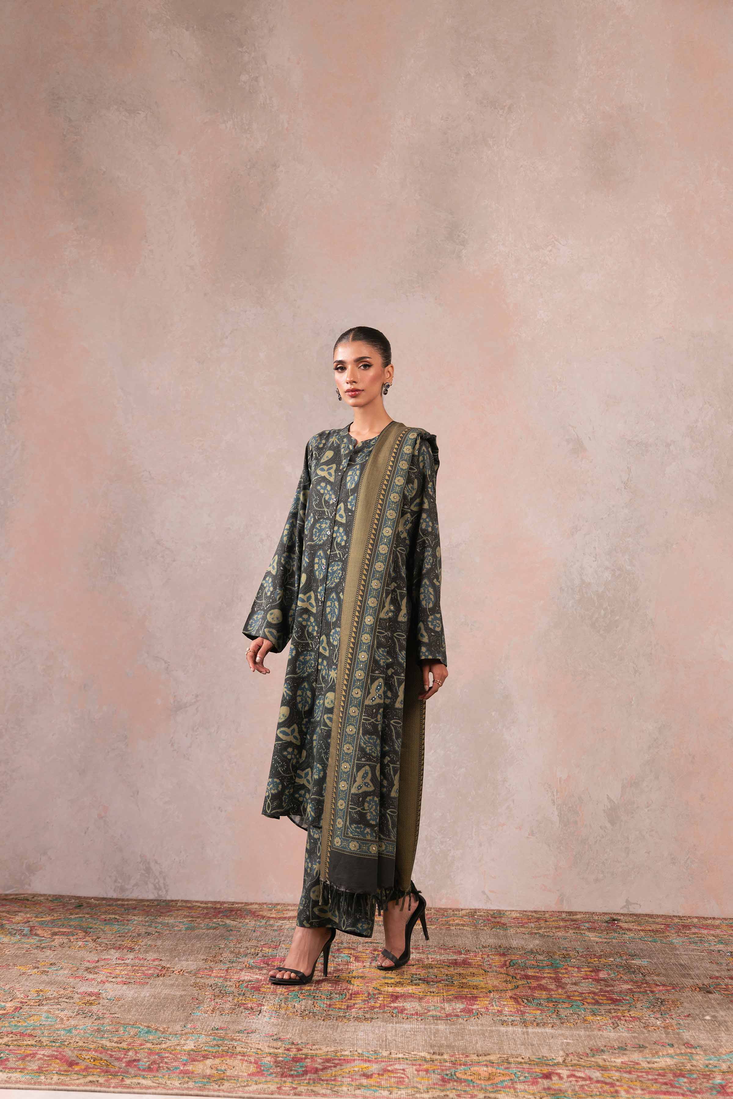 Effortlessly capture hearts with our printed three-piece suit from the latest rawayat collection.