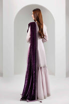 3 Piece Embroidered Shirt With Shawl & Gharara