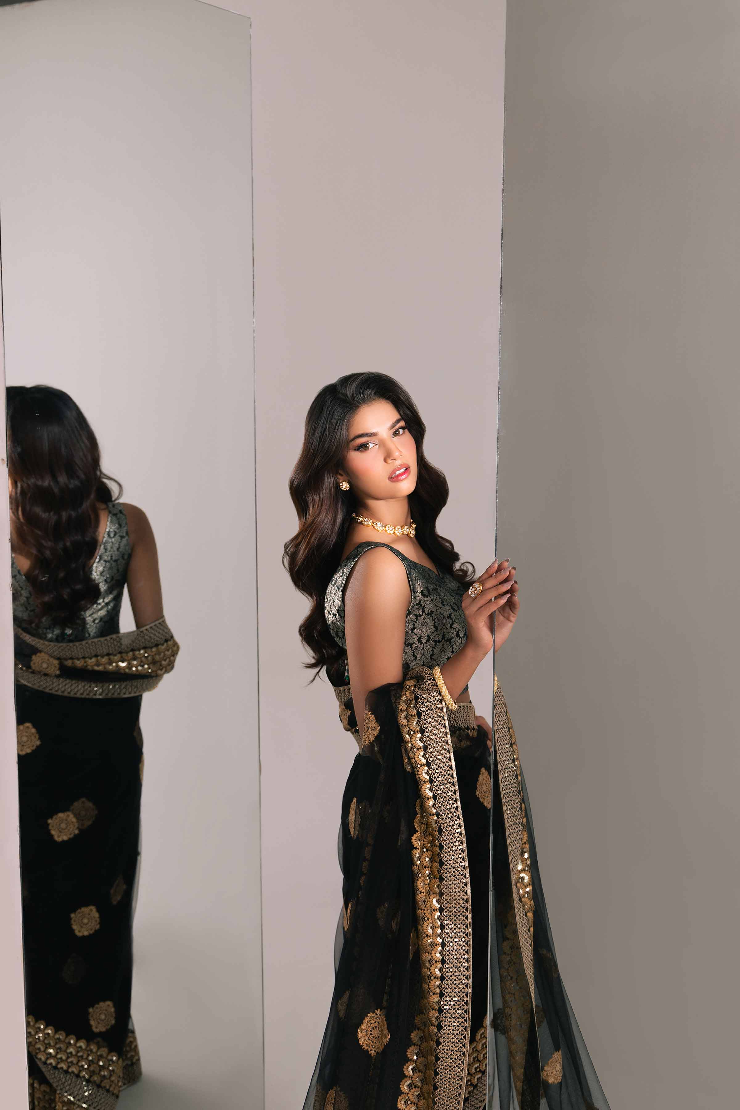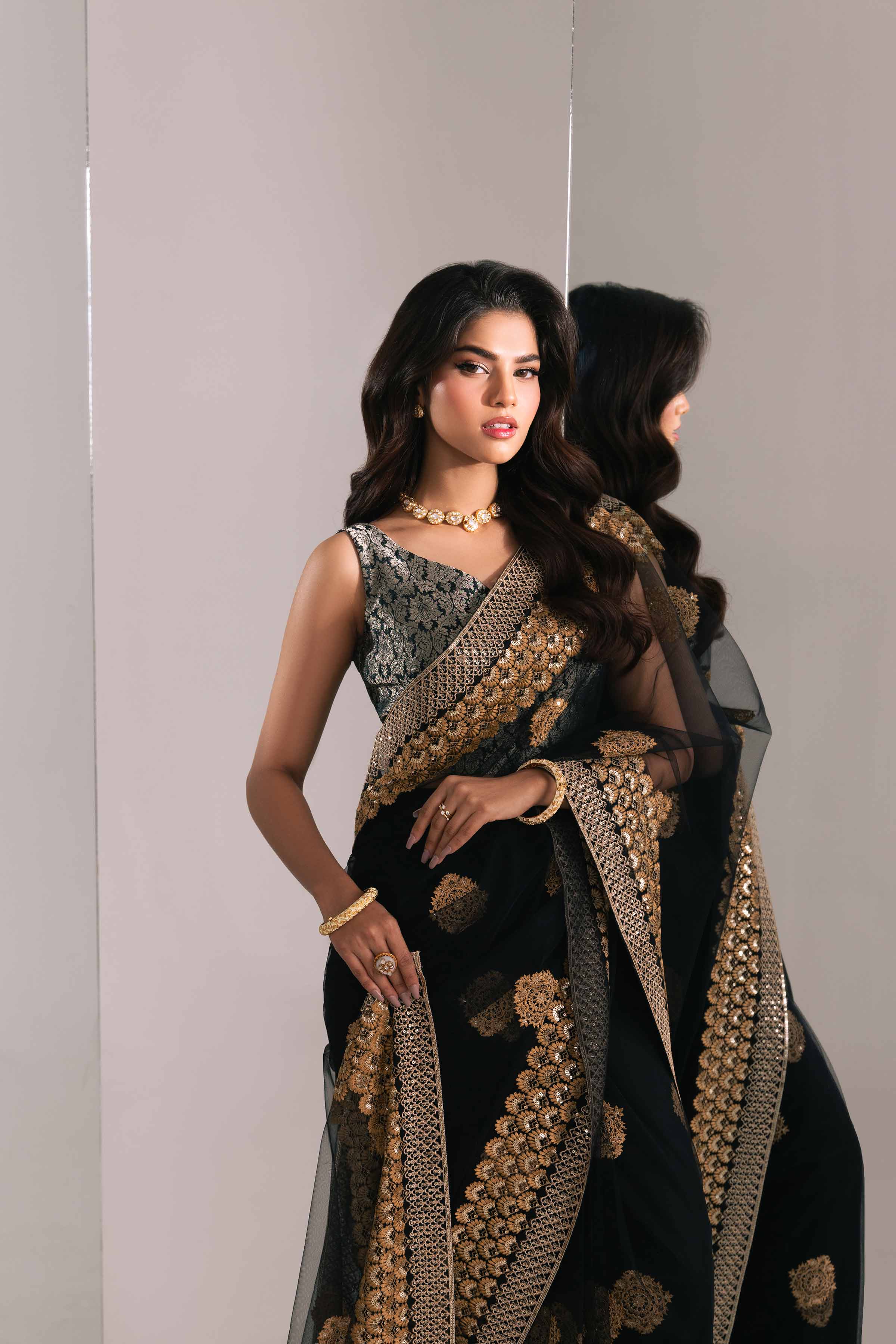 Discover the enduring beauty of our intricately designed embroidered saree set from the latest anchal collection.