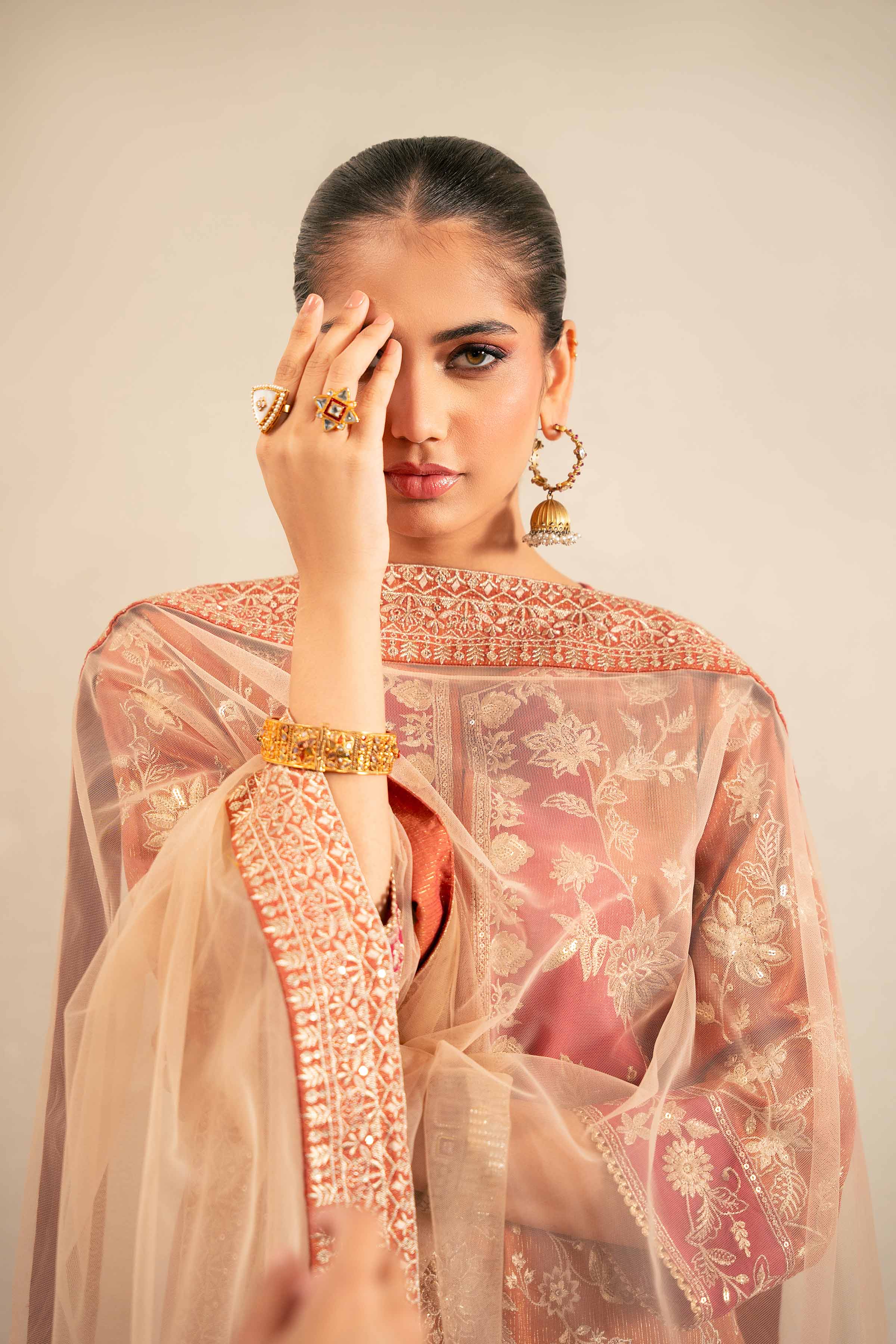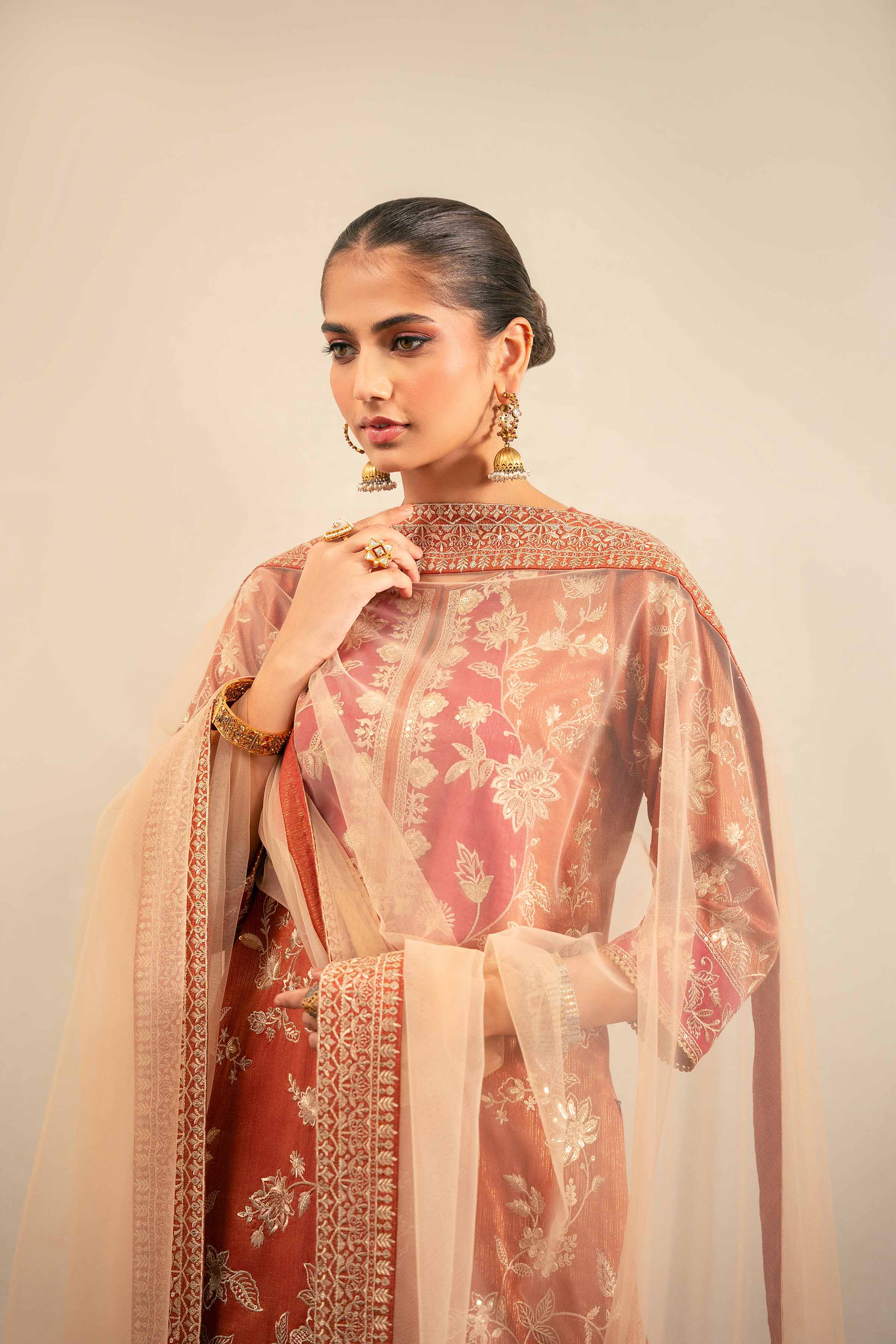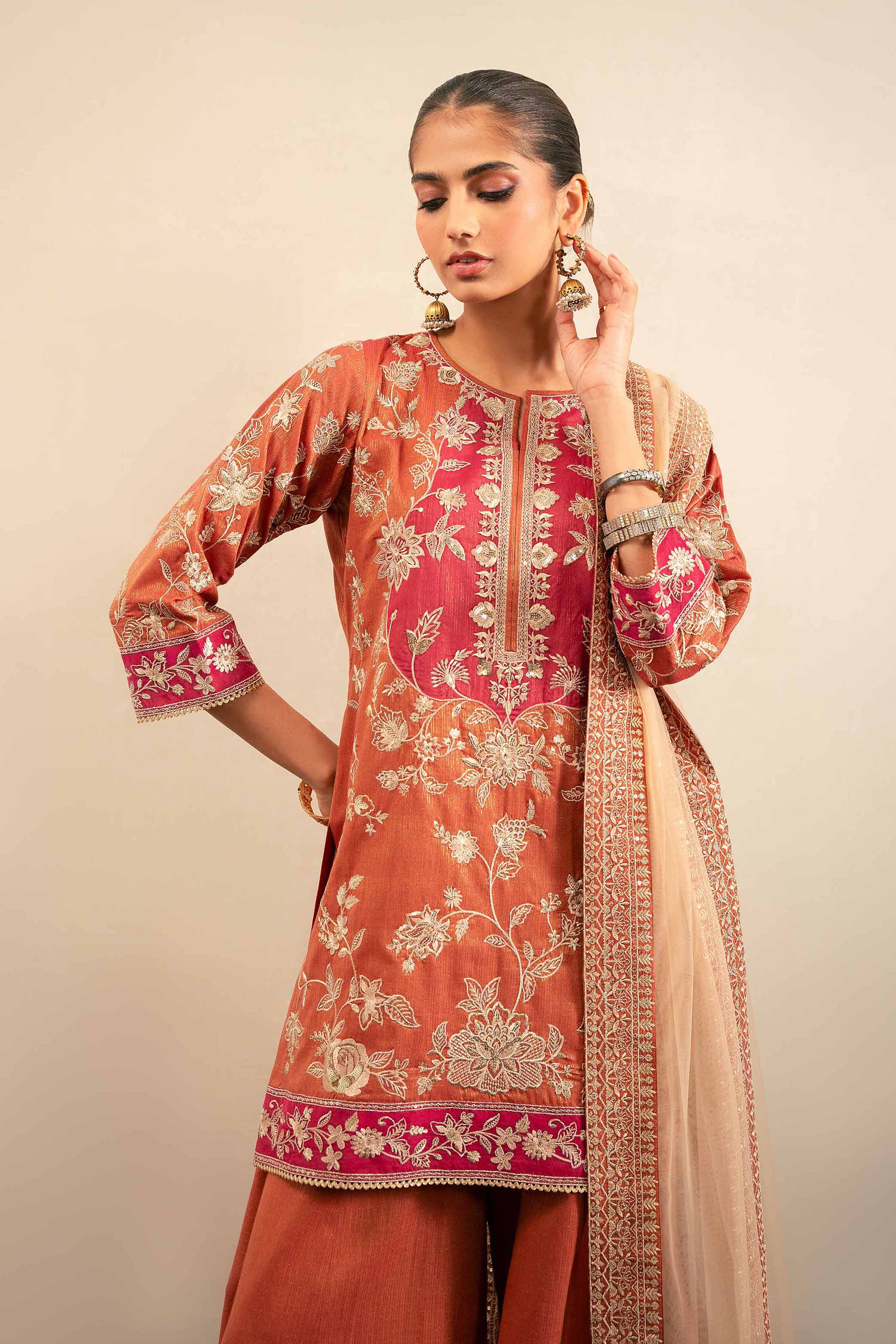 Look appealing and graceful in this embroidered three-piece suit from the latest rawayat collection.