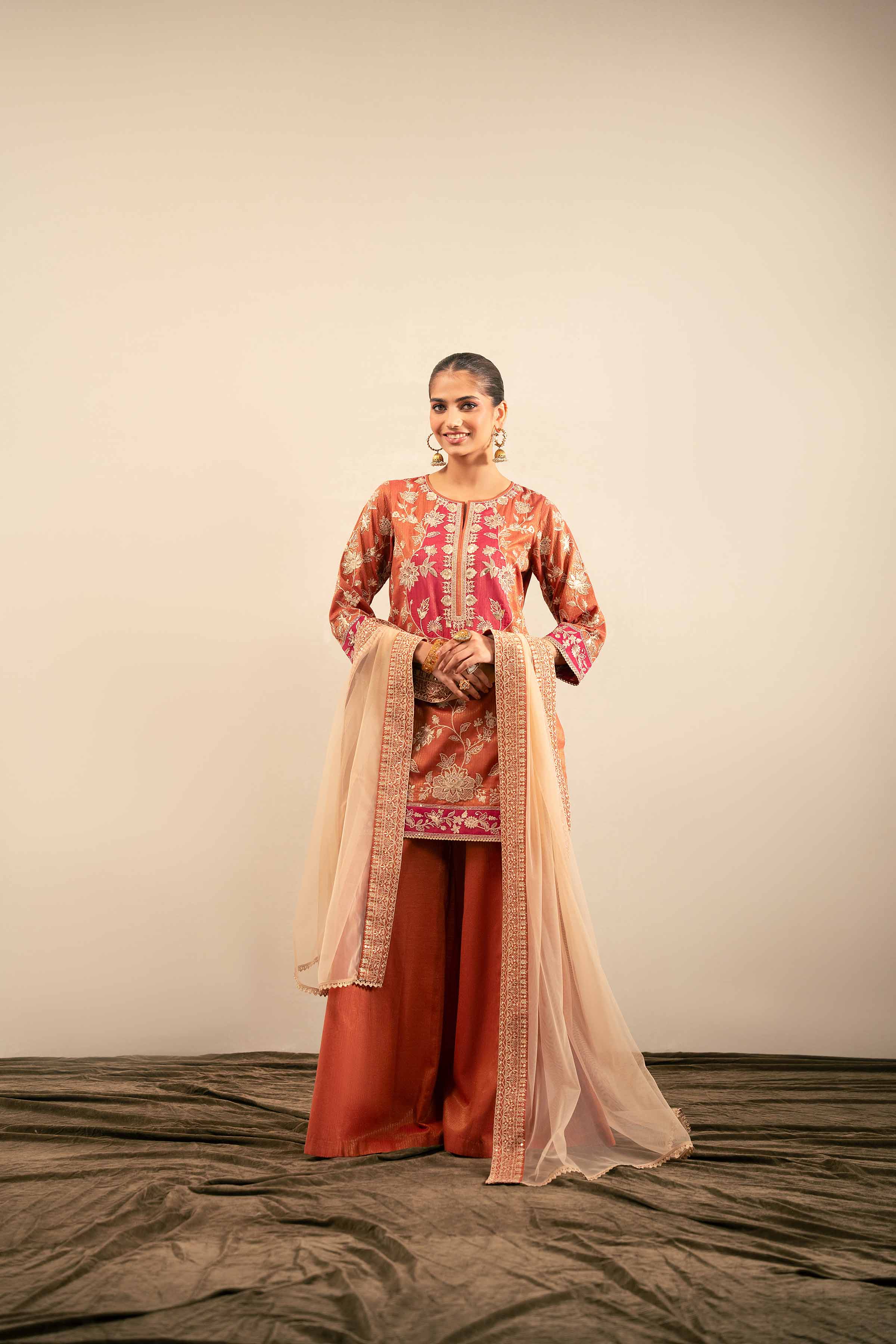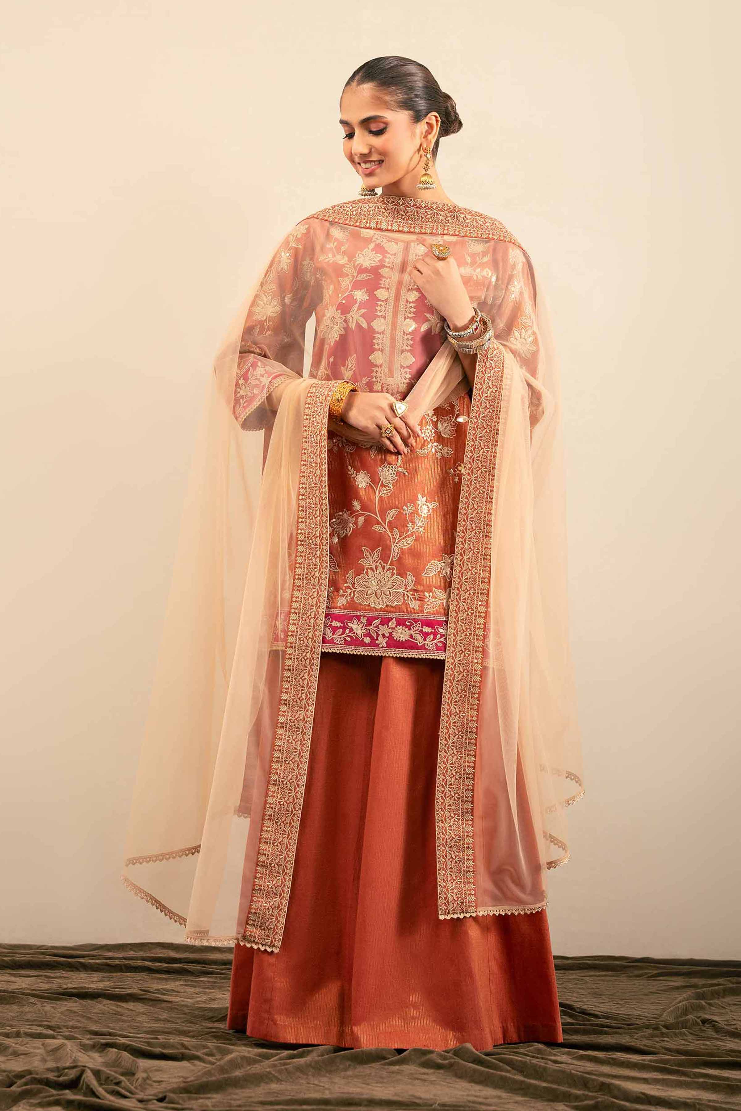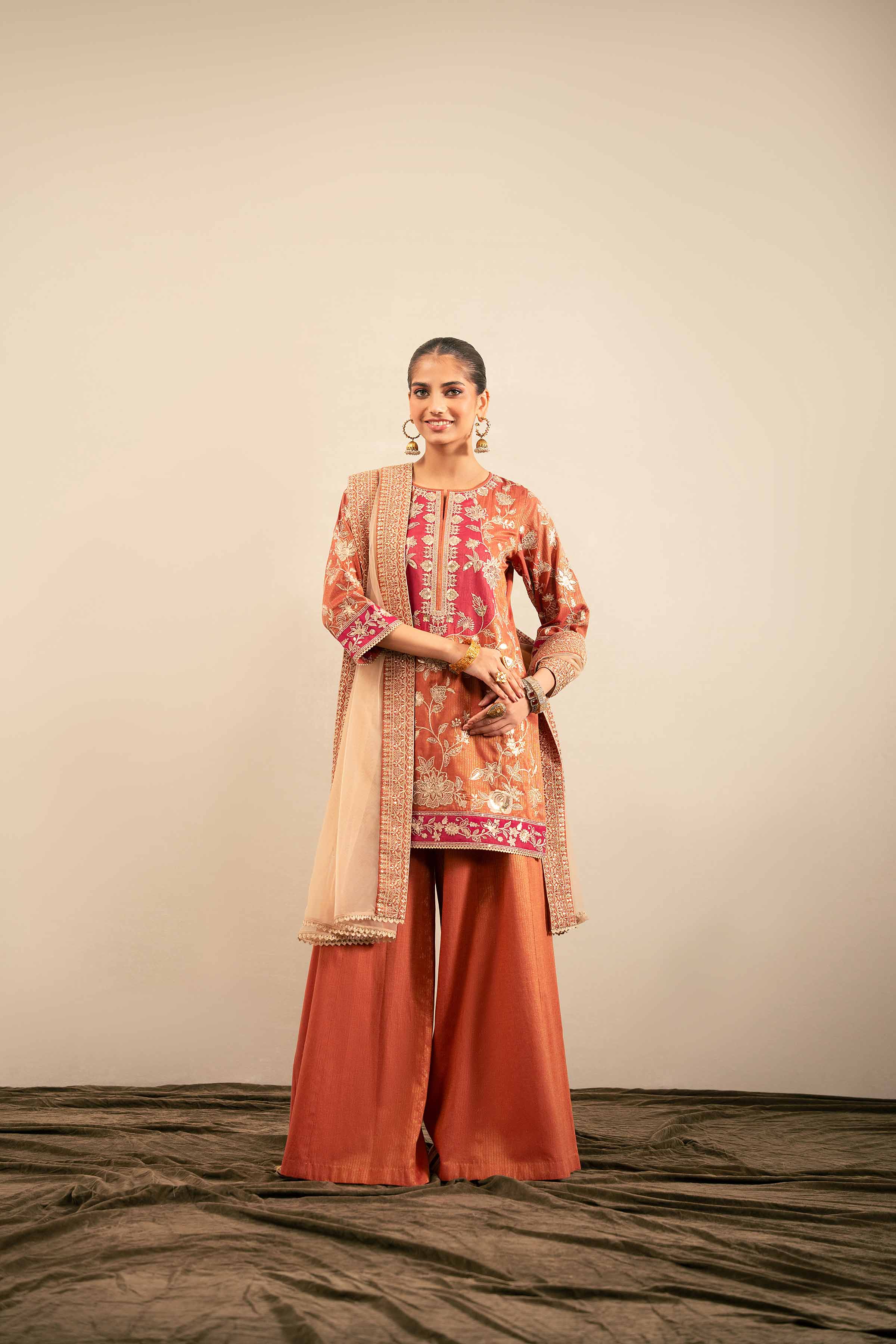 Look appealing and graceful in this embroidered three-piece suit from the latest rawayat collection.
