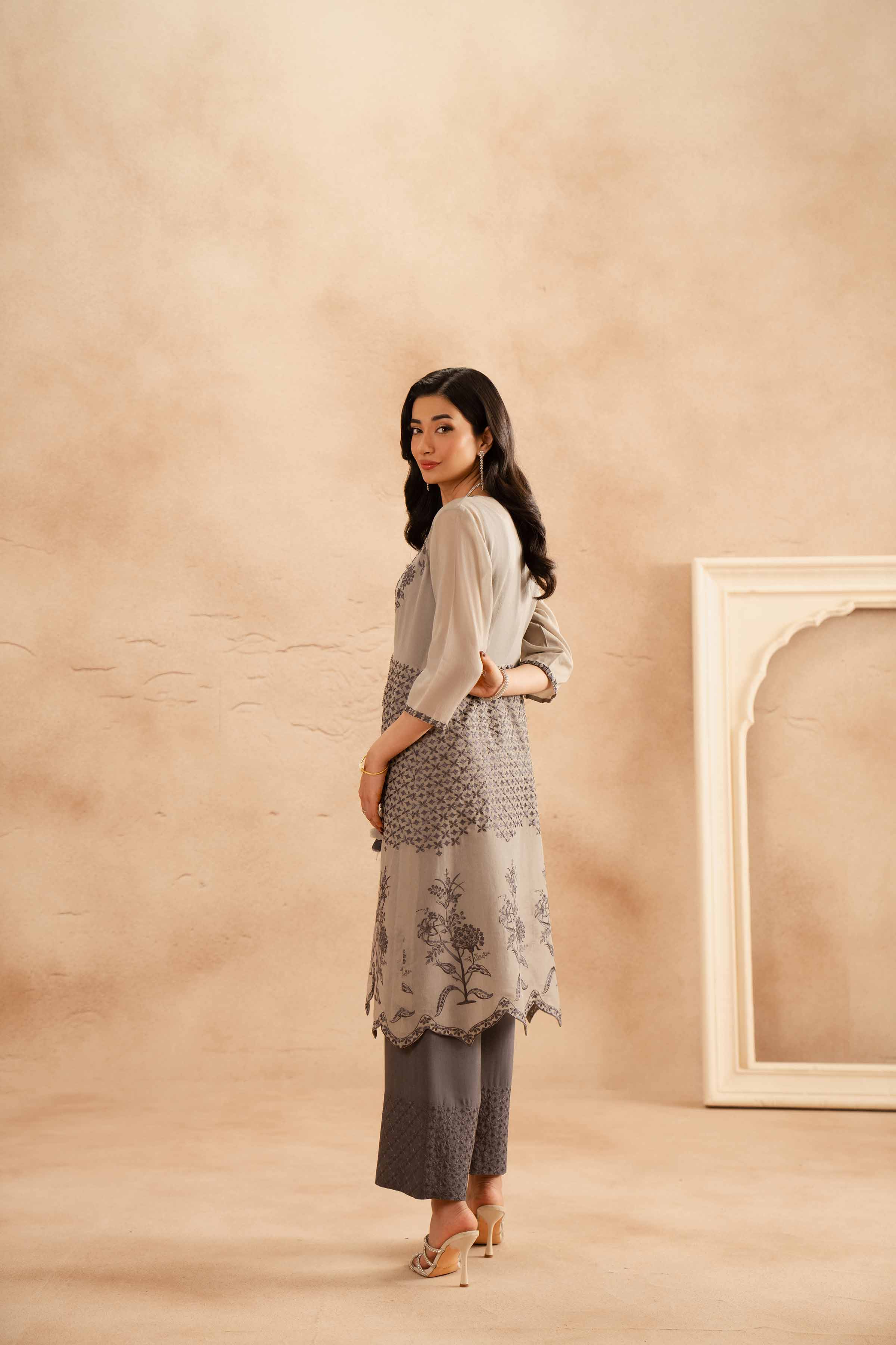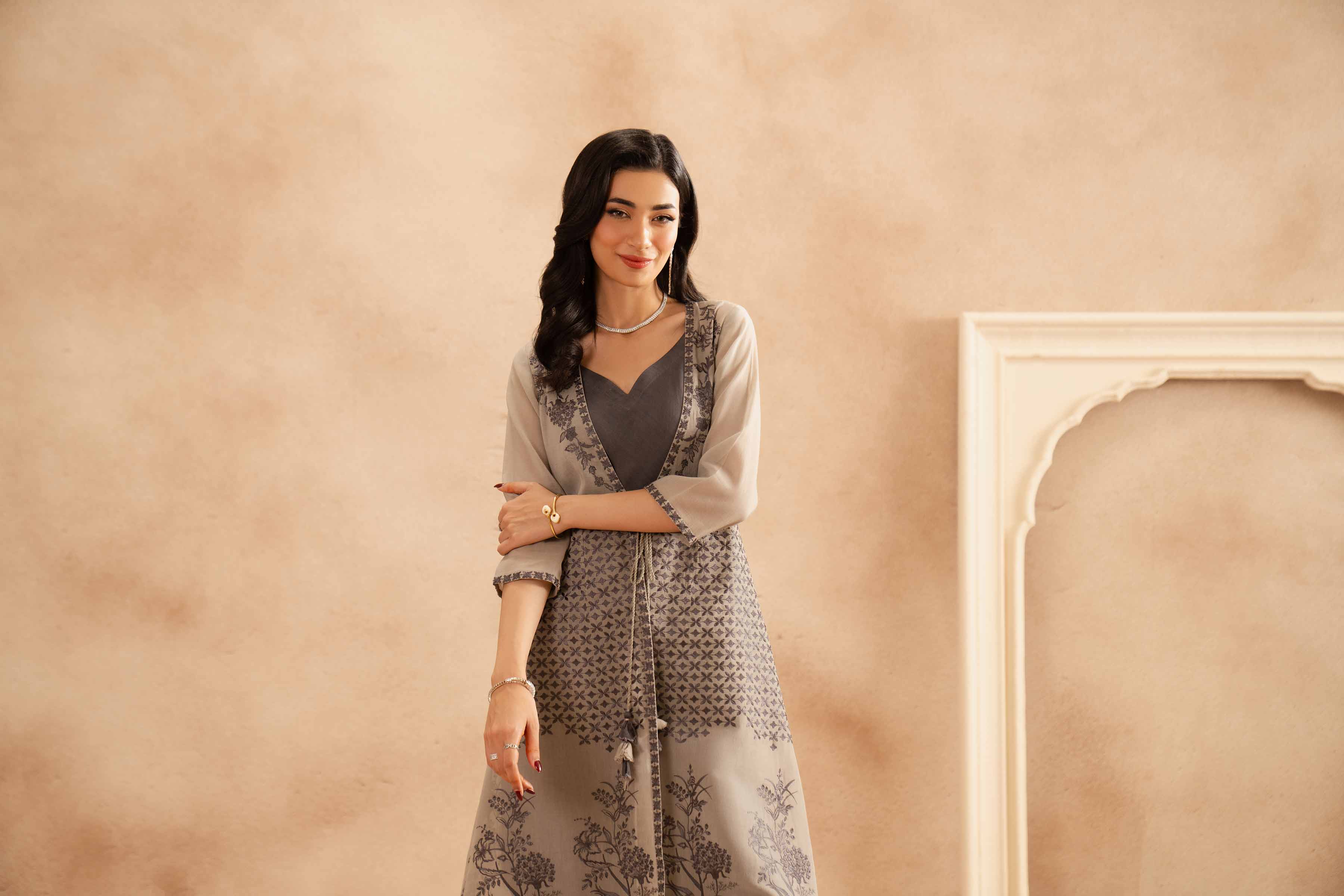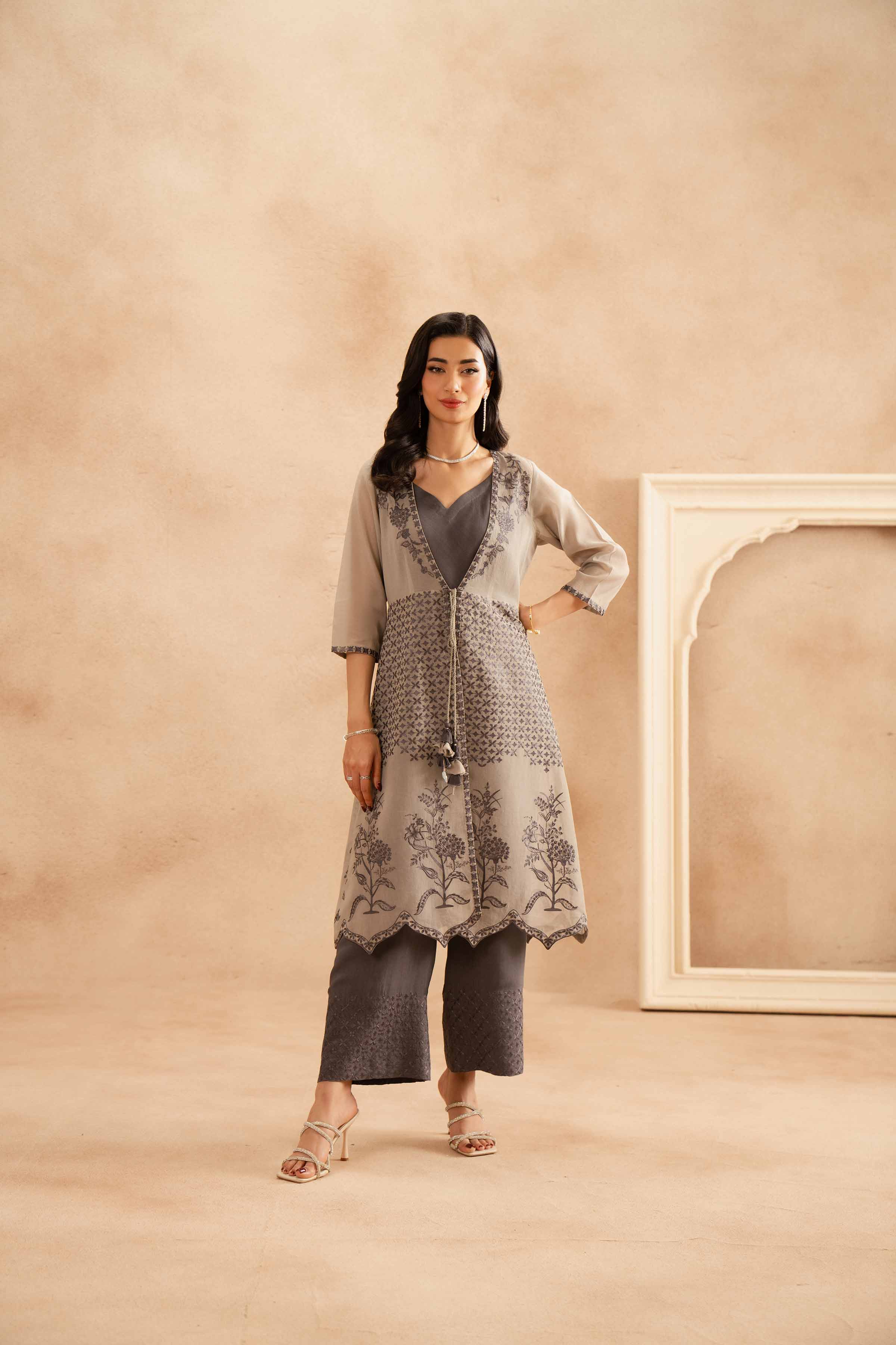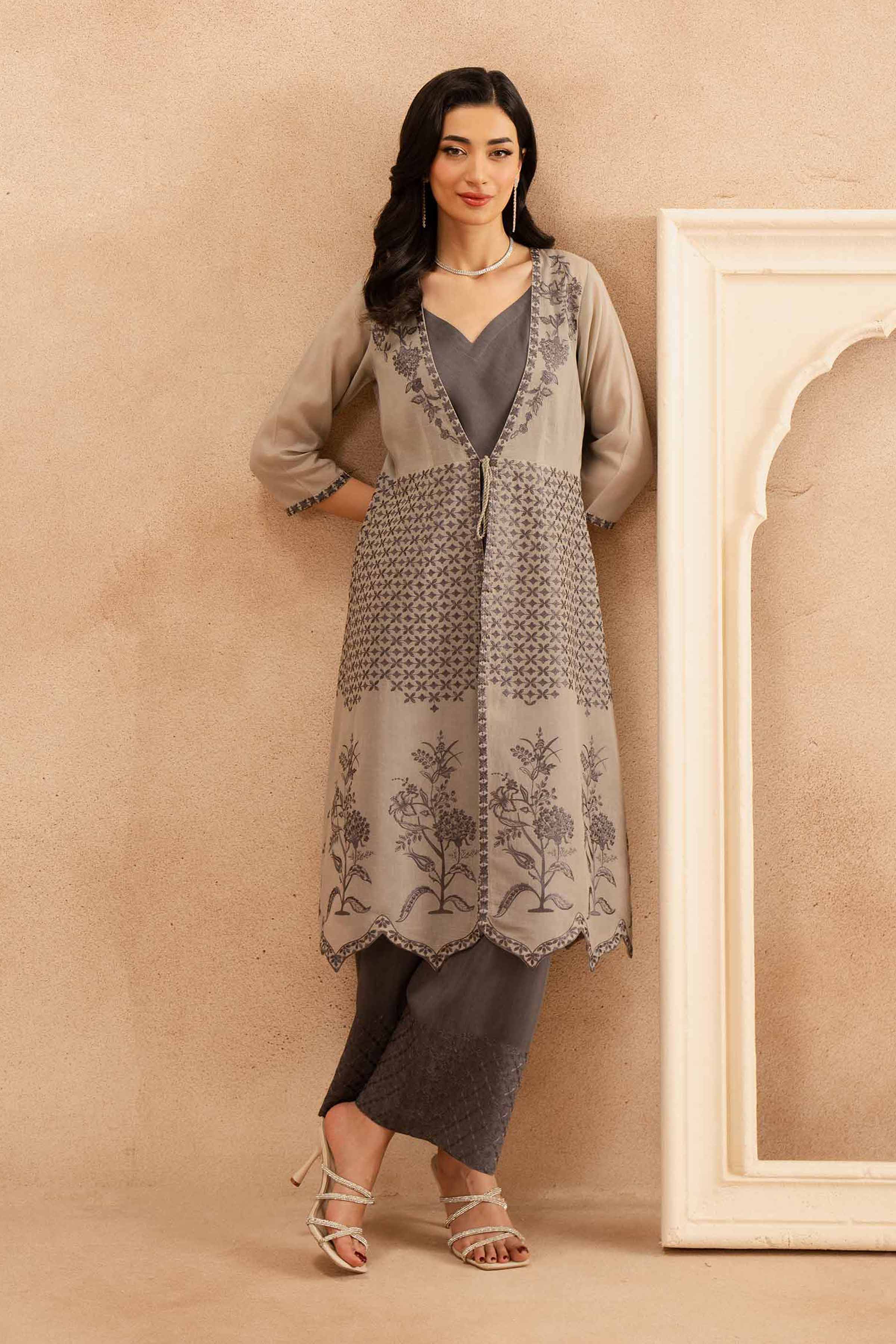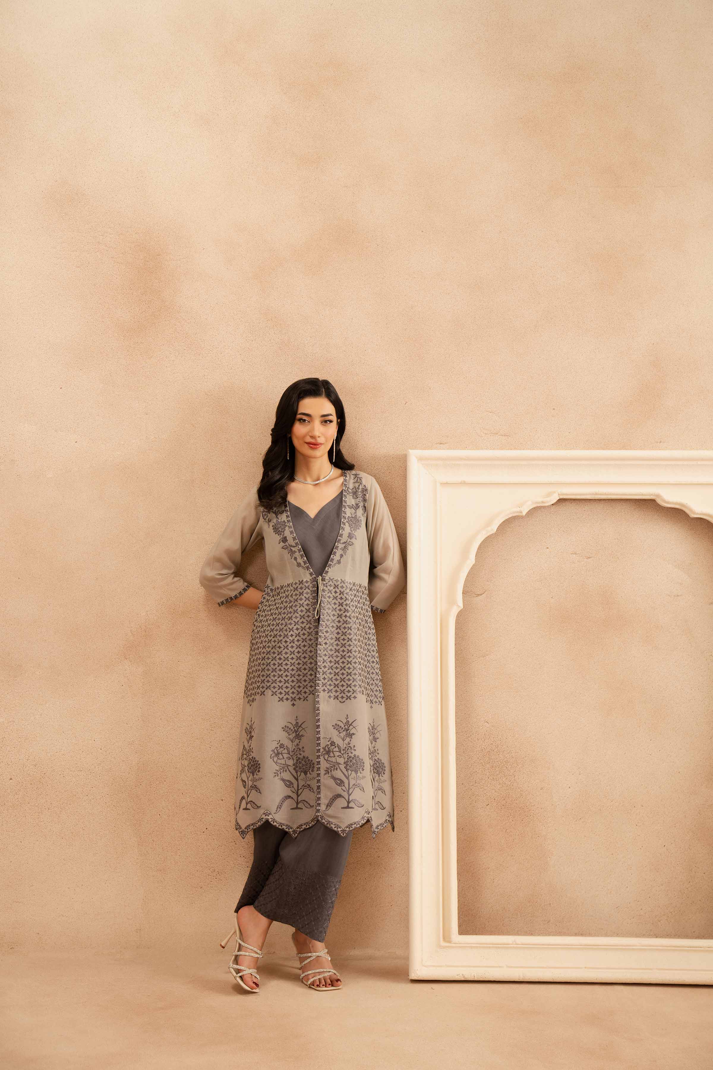 Effortlessly capture hearts with our embroidered three-piece suit from the latest deeva collection.