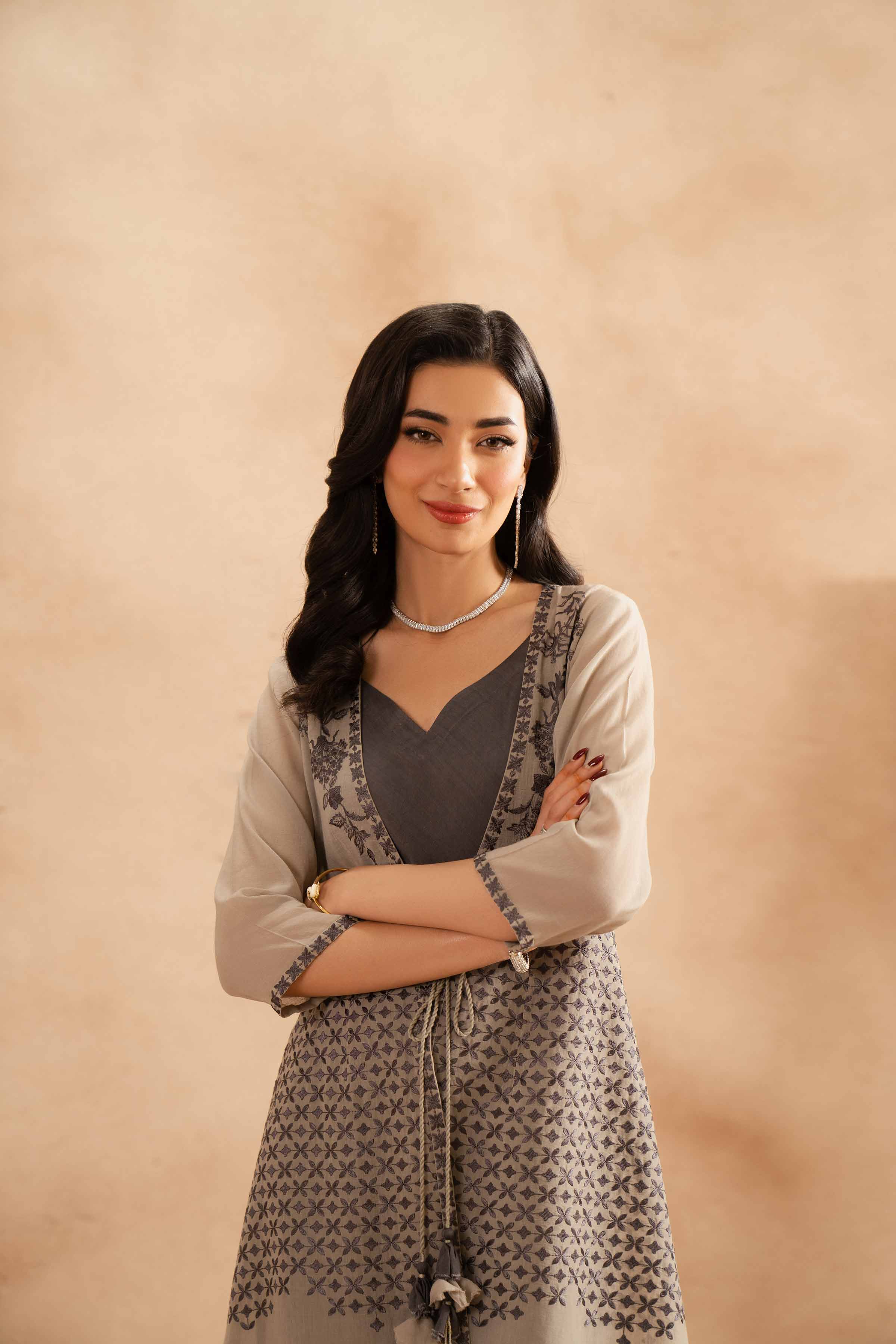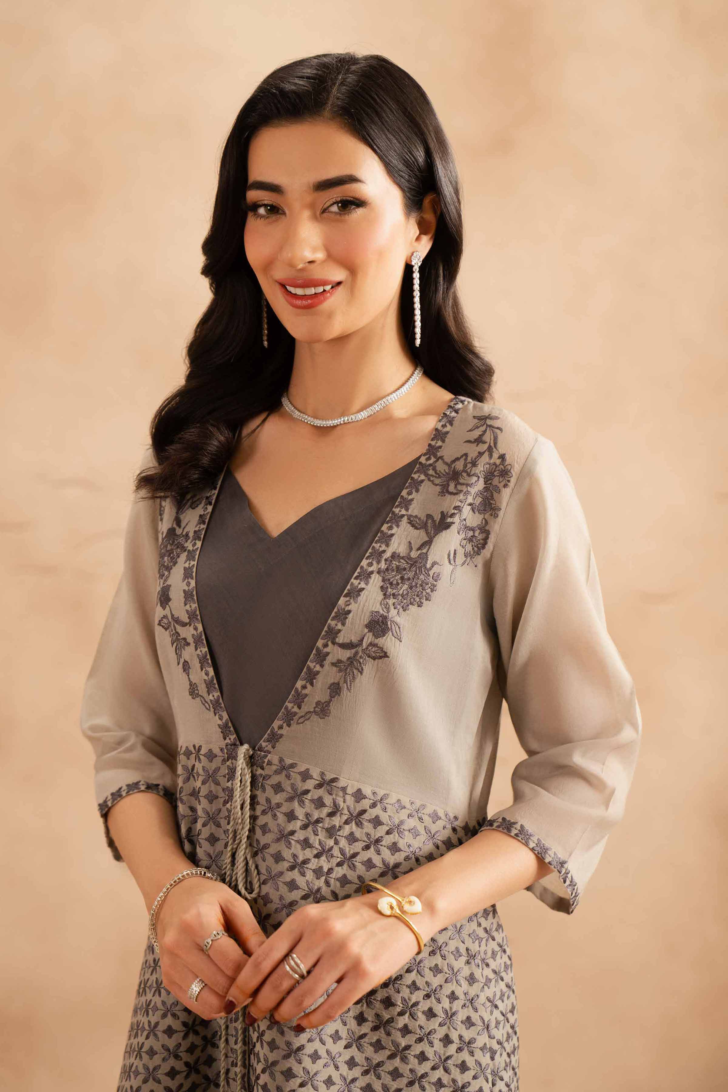 V Neckline With Dorri & Tassels Detail, Long Embroidered Front Open Jacket