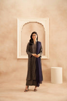 3 Piece Black Printed Self Swiss Shirt & Culottes With Chiffon Dupatta