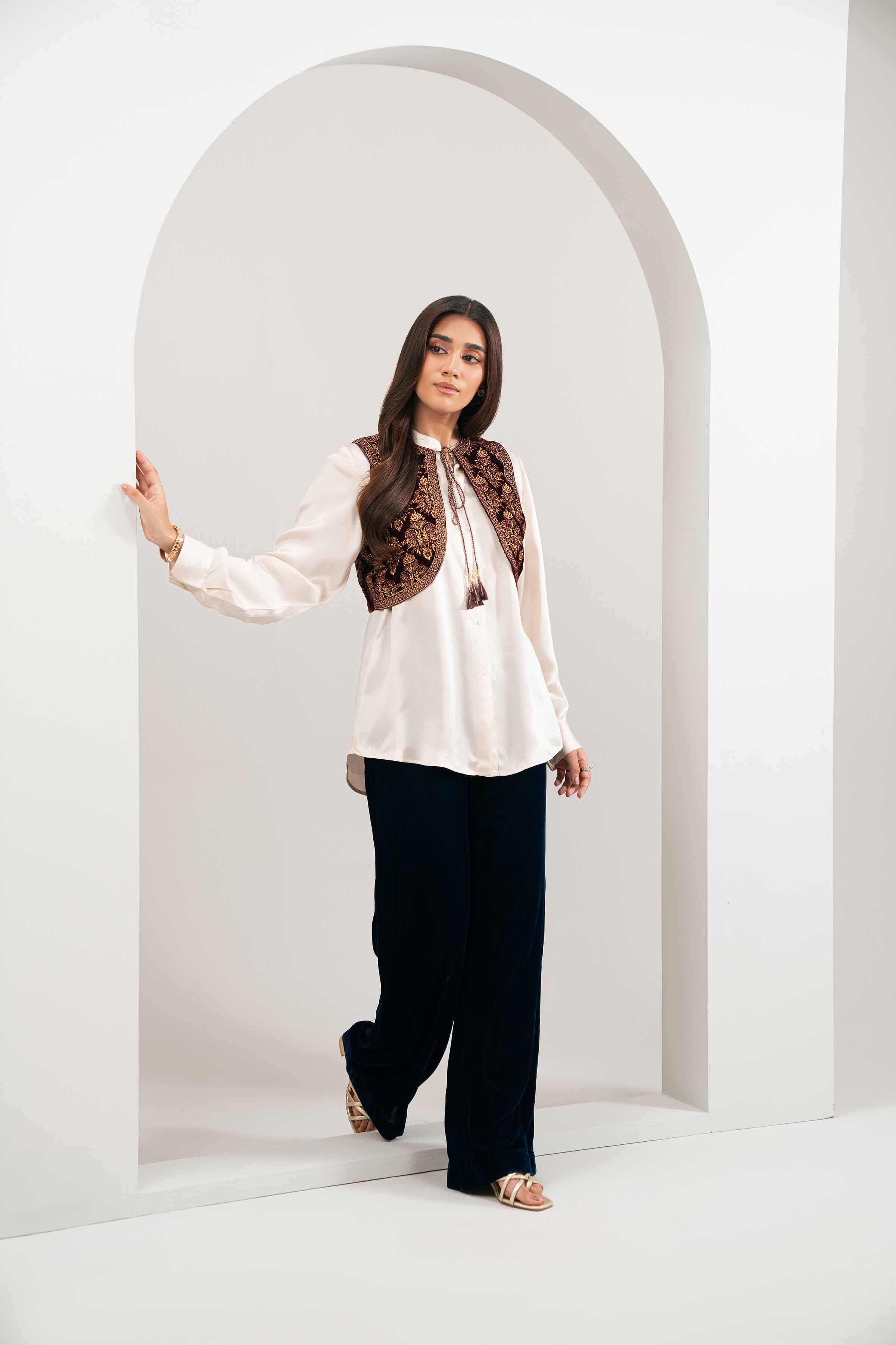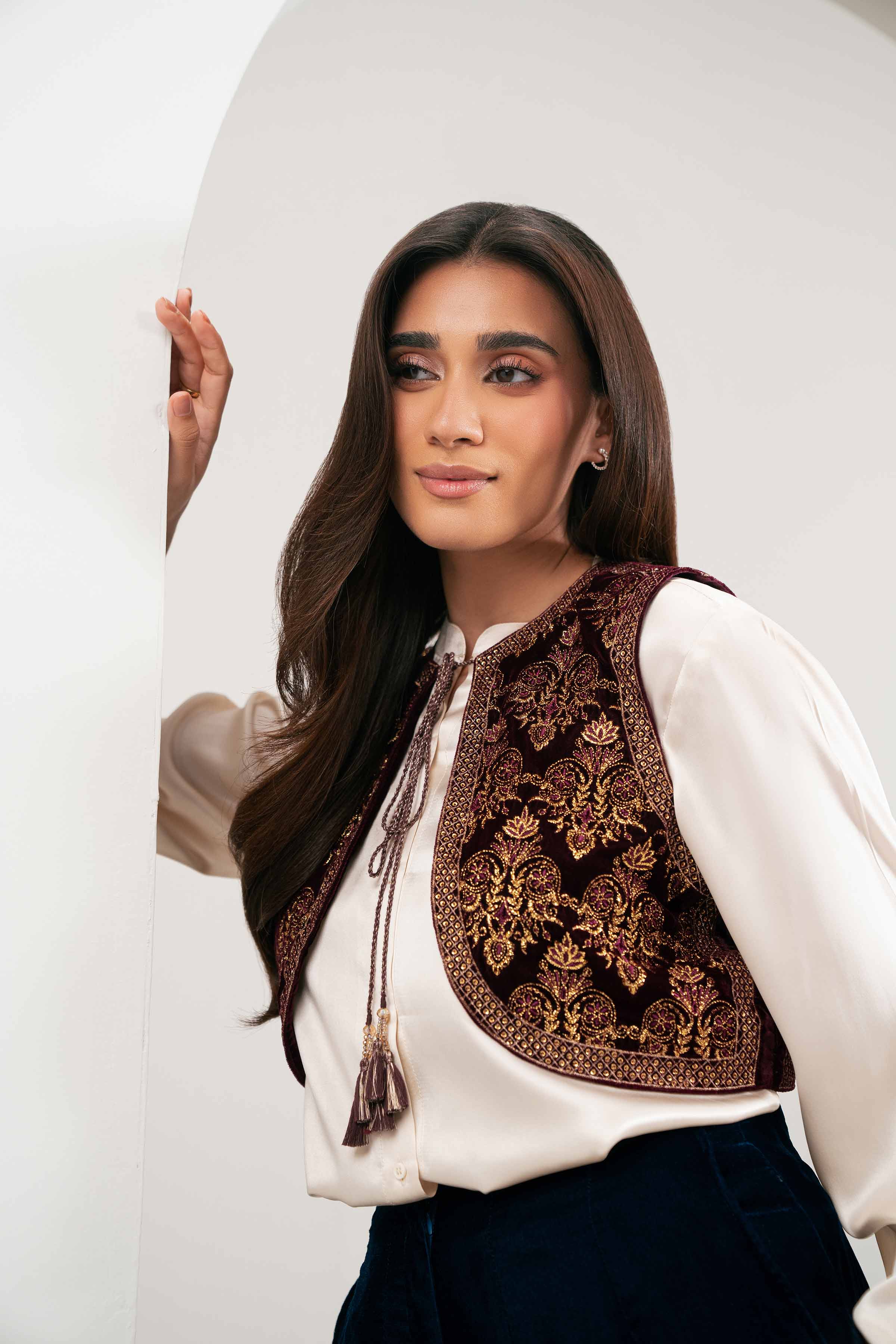 Make an unforgettable impression with this embroidered three-piece suit from the latest Deeva Winter Collection, perfect for refined allure.