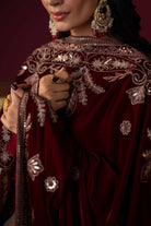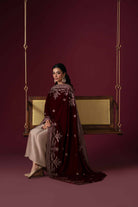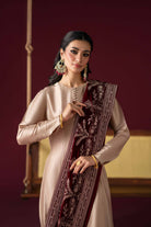 Showcase your fashion sense with this embroidered shawl from the latest Zar Winter Collection, blending delicate embroidery with graceful appeal.