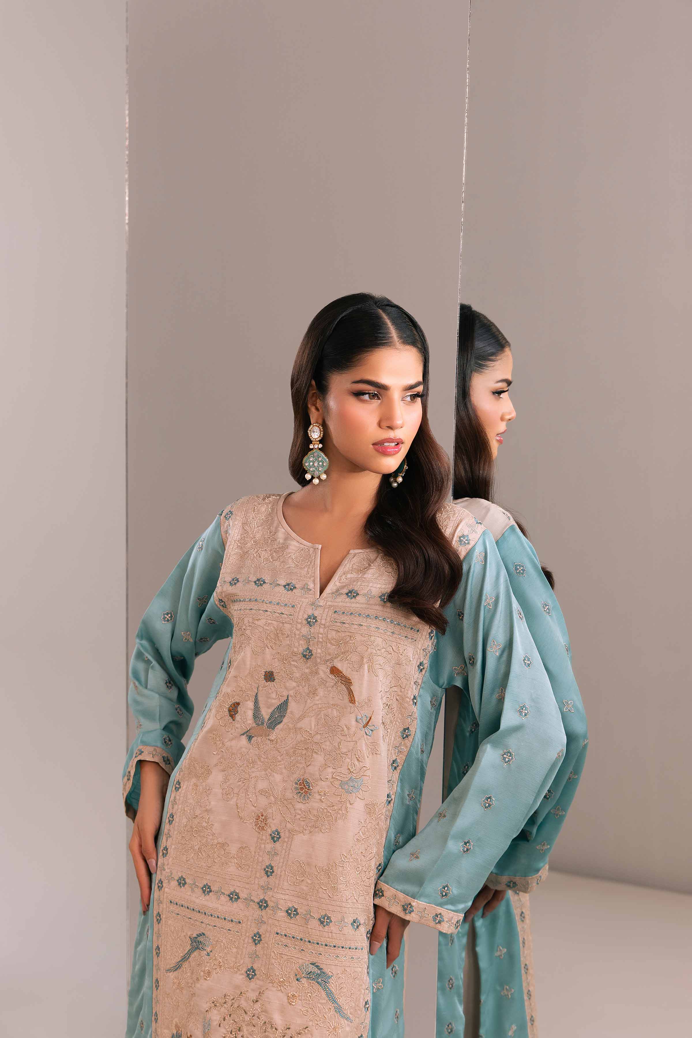 Experience the elegance of this embroidered two-piece suit from the latest rawayat collection.