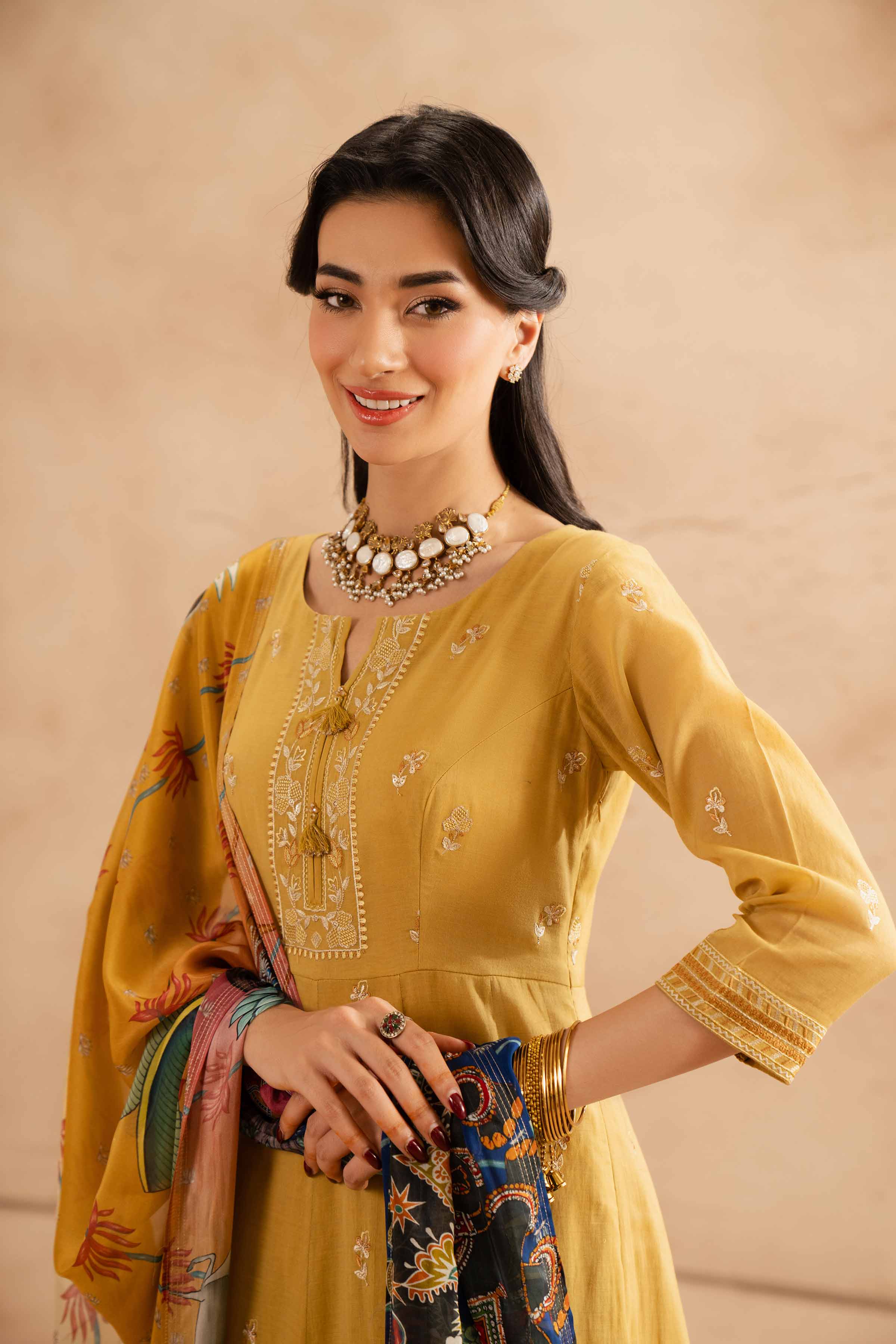 Effortlessly capture hearts with our embroidered three-piece suit from the latest noori collection.