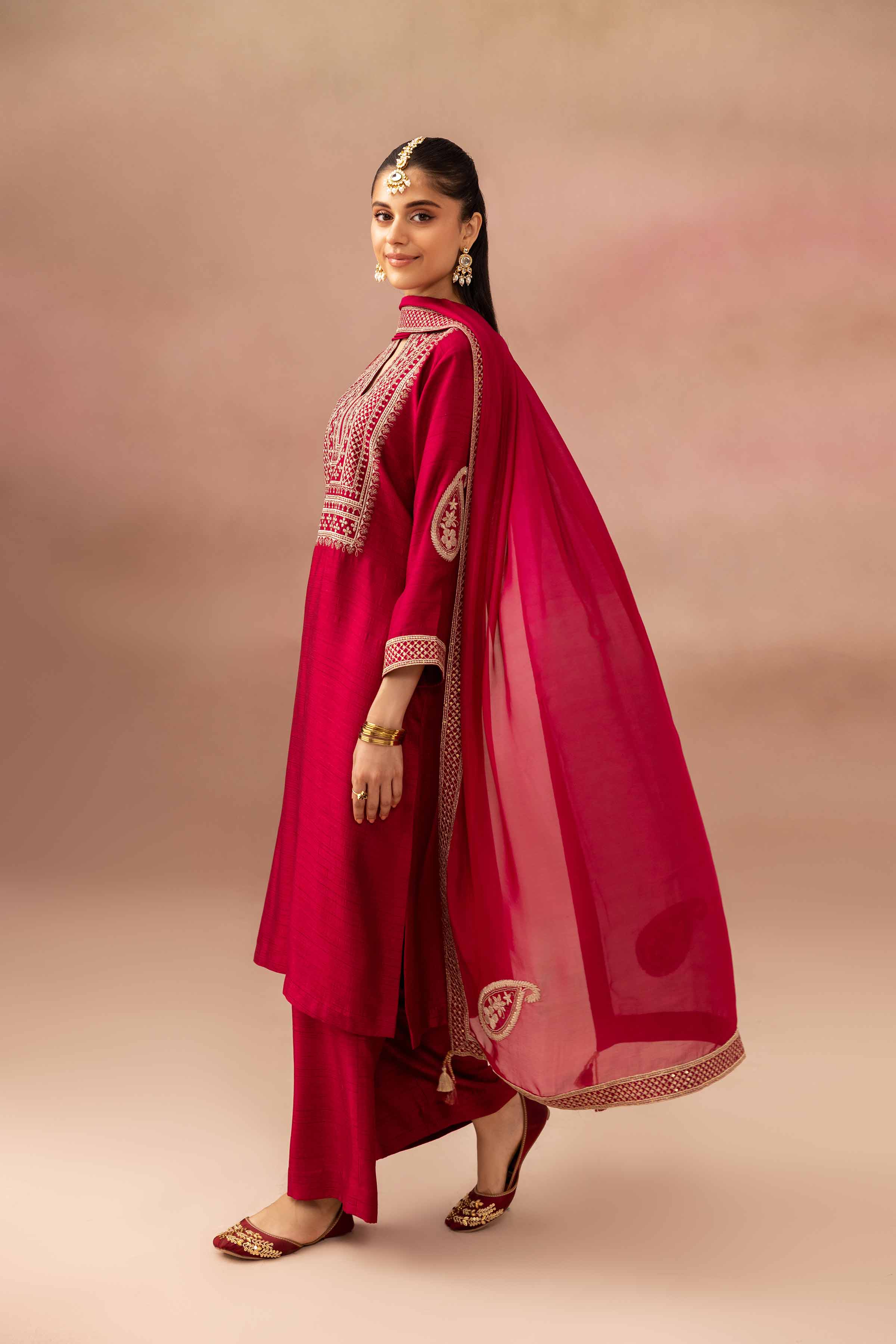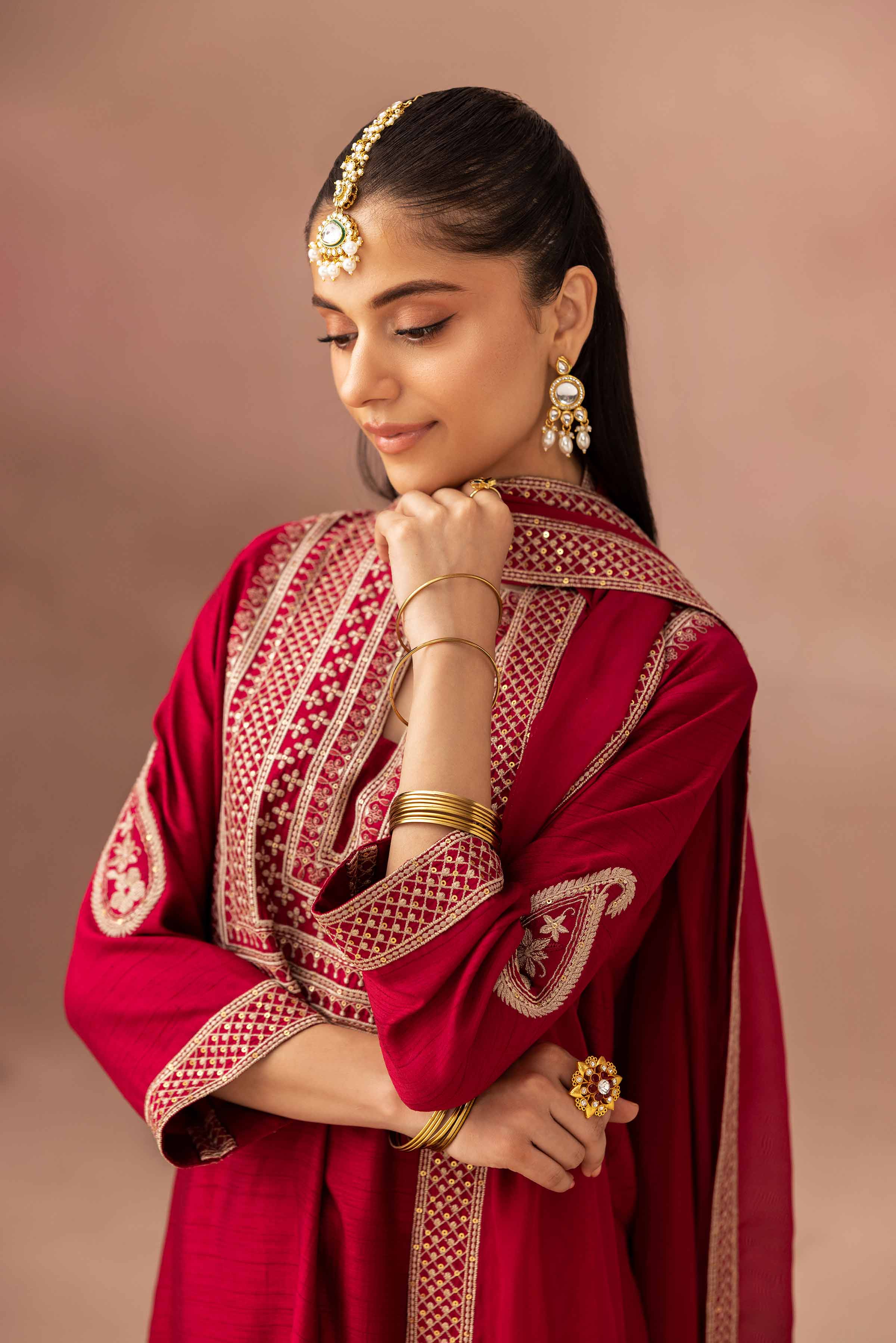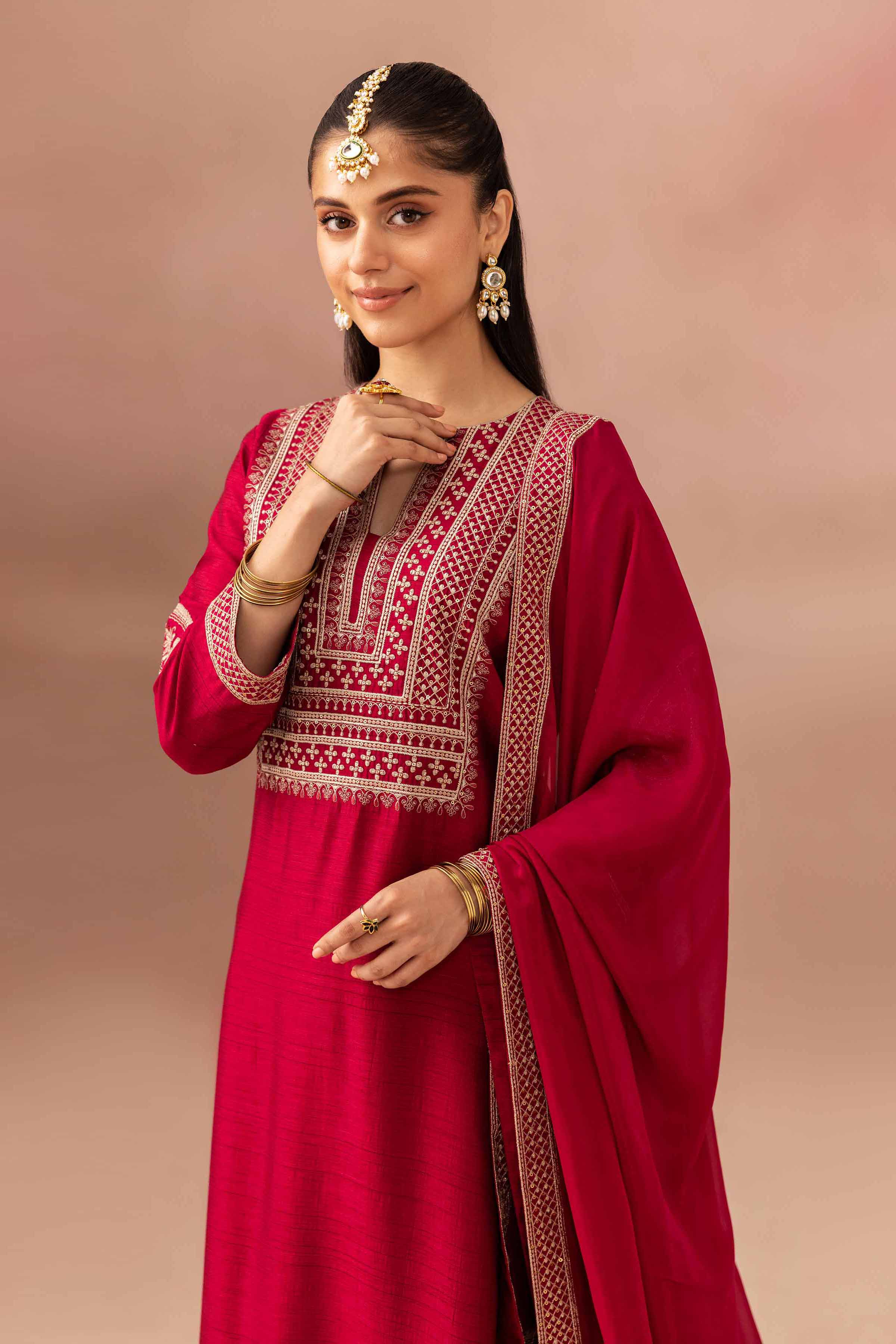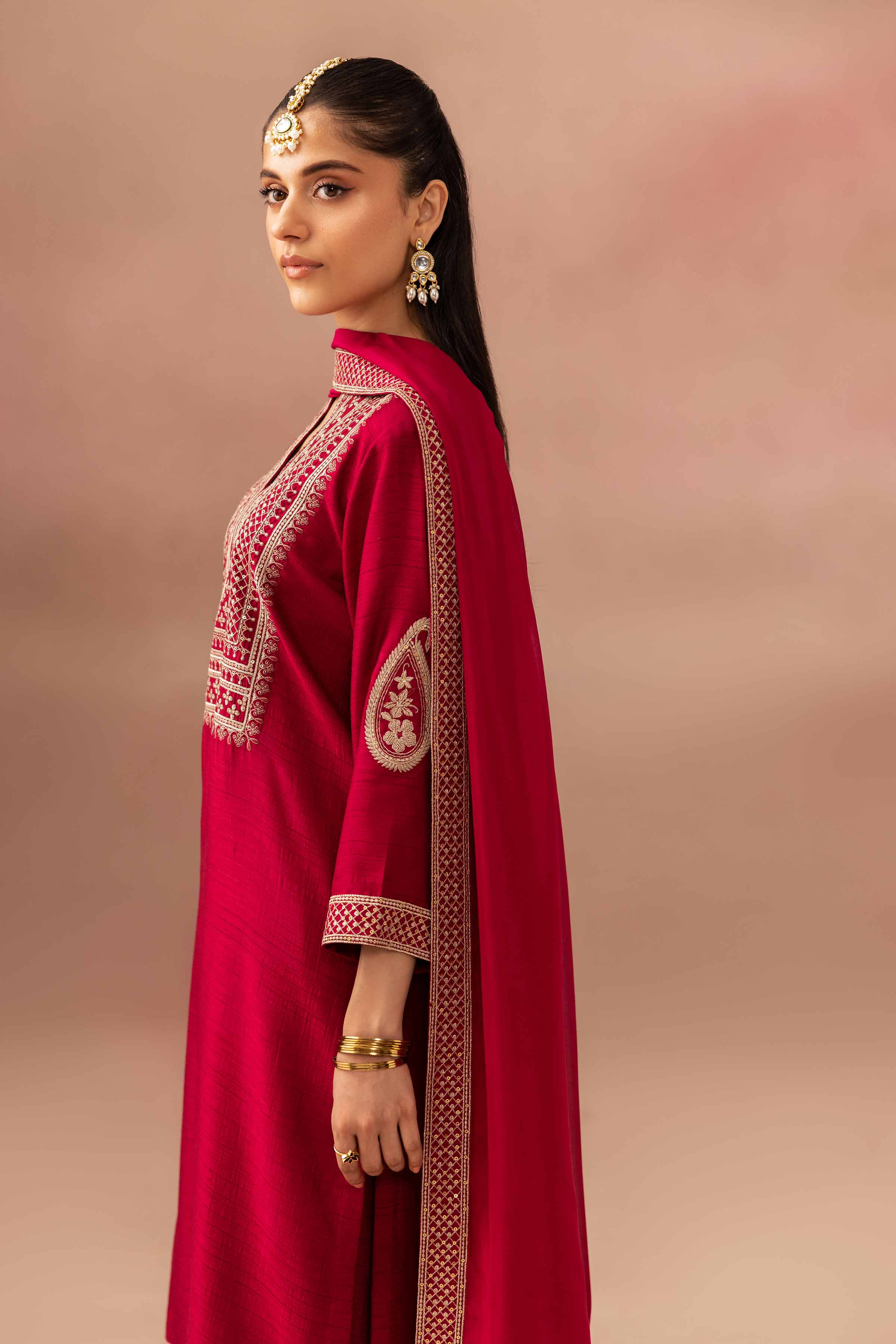 Effortlessly capture hearts with our embroidered three-piece suit from the latest rawayat collection.