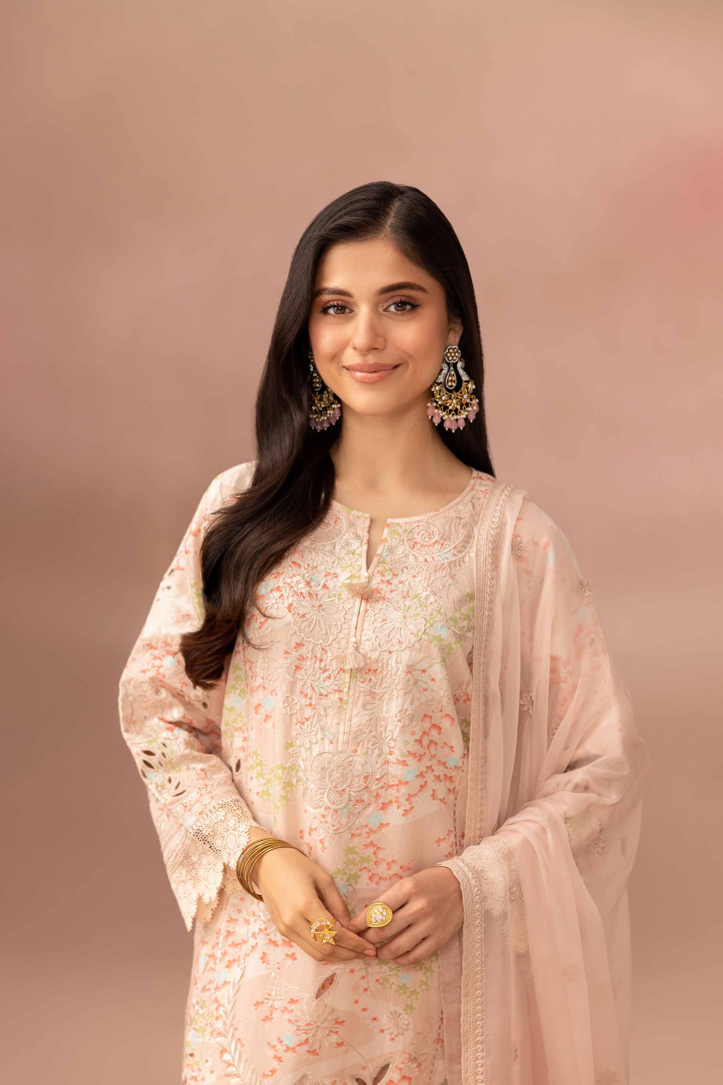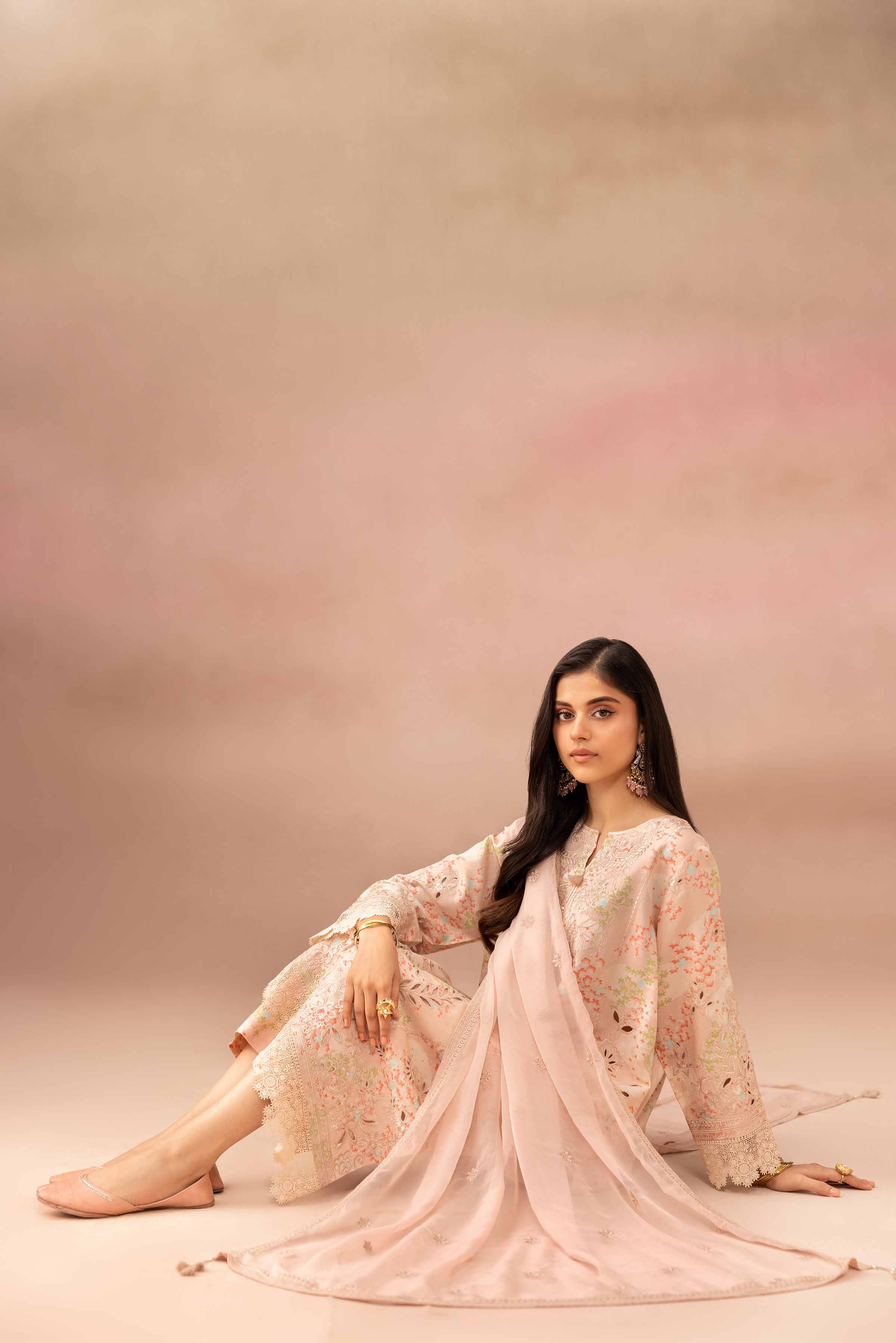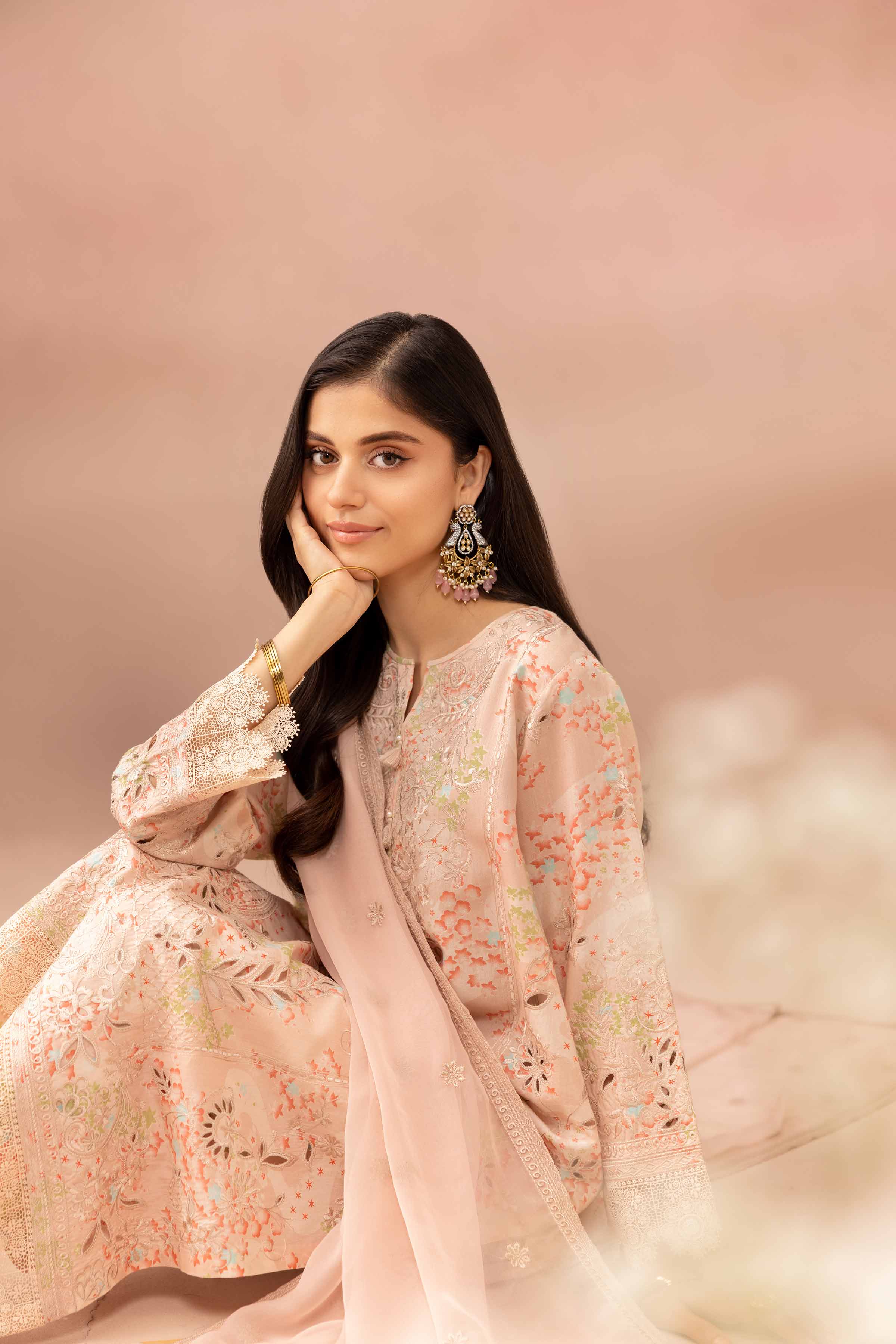 Effortlessly capture hearts with our embroidered three-piece suit from the latest rawayat collection.