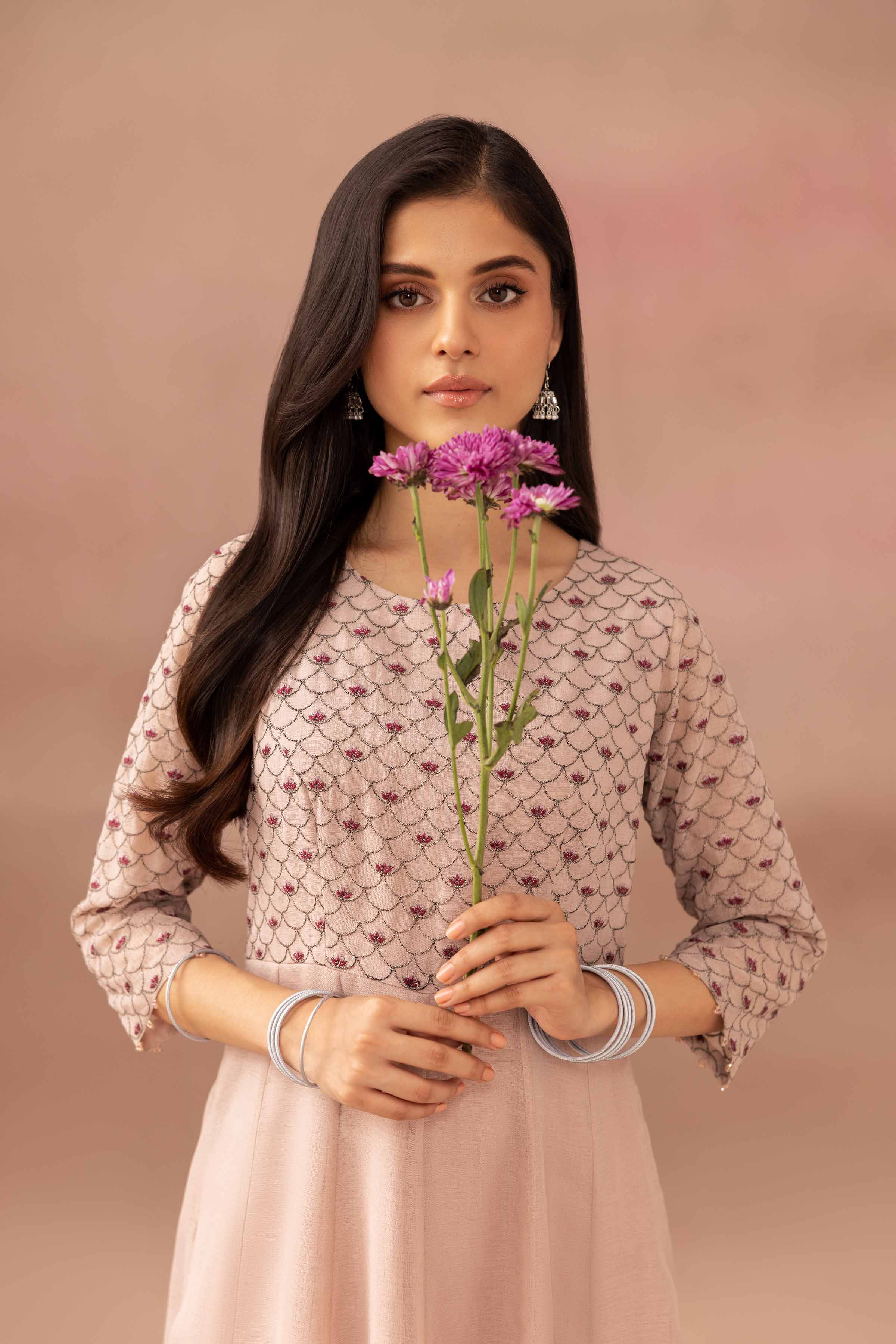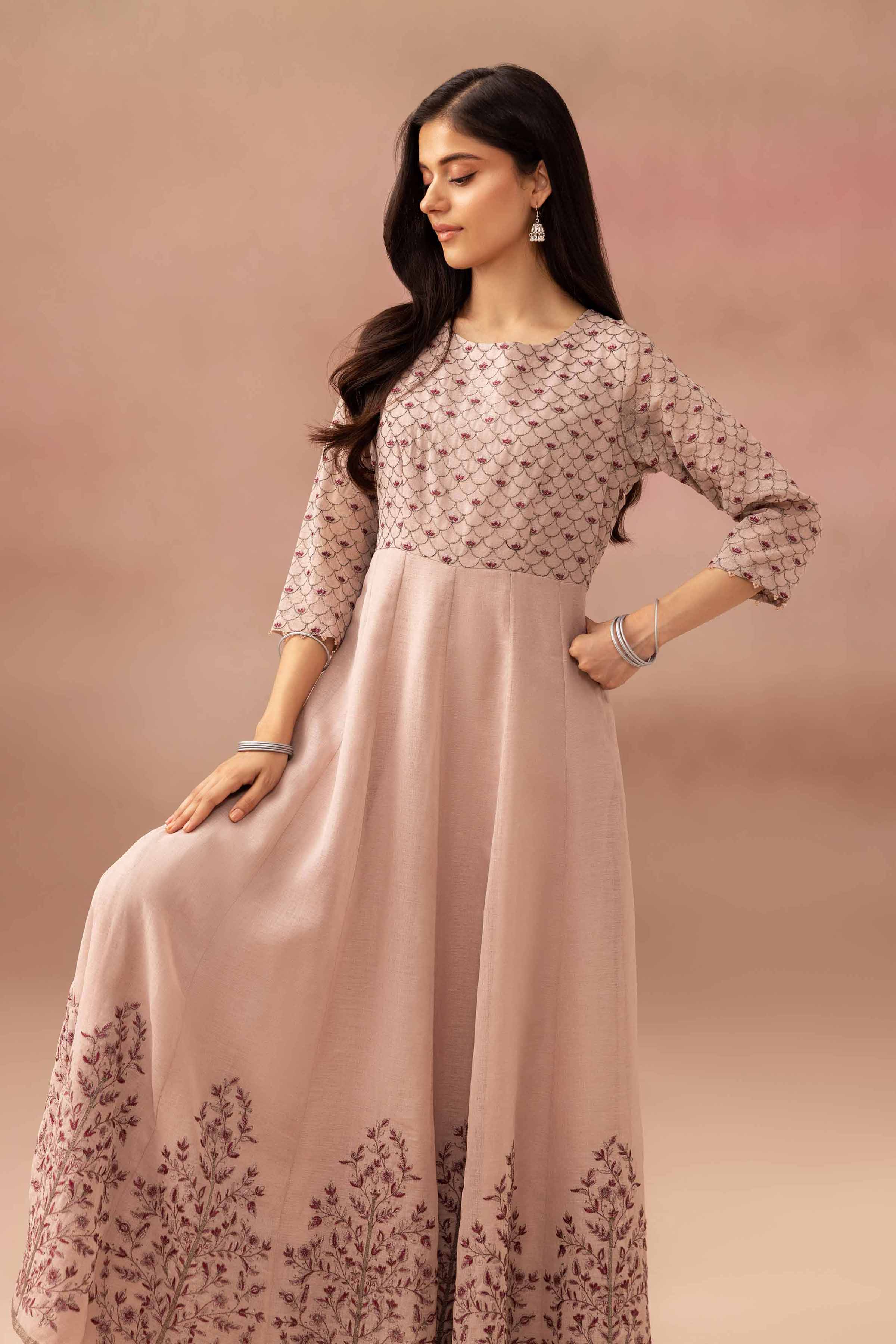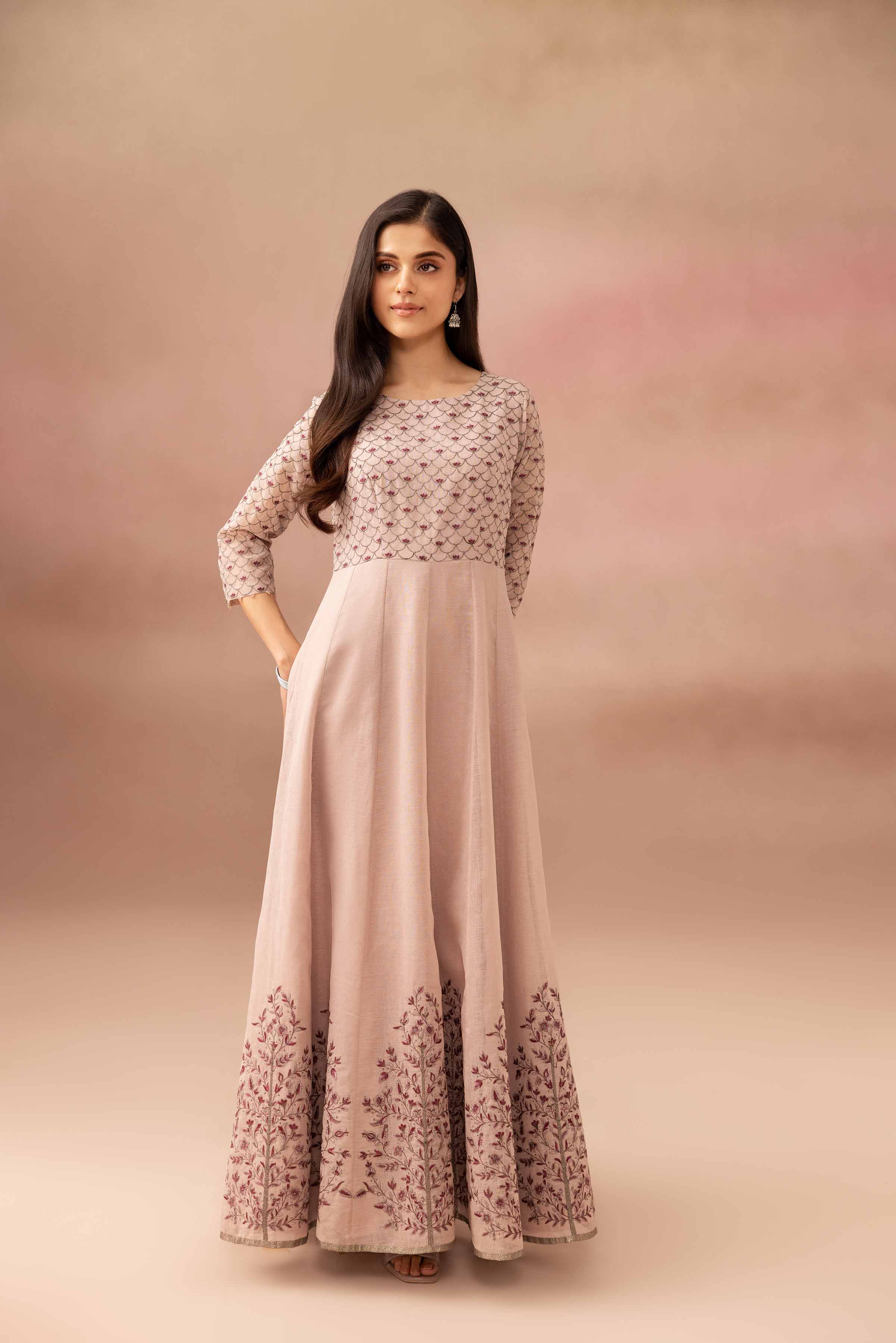 Effortlessly capture hearts with our embroidered one-piece dress from the latest noori collection.