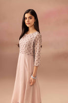 Round Neckline, Embroidered Yoke And Crystal Sleeve Accents, Paneled Dress
