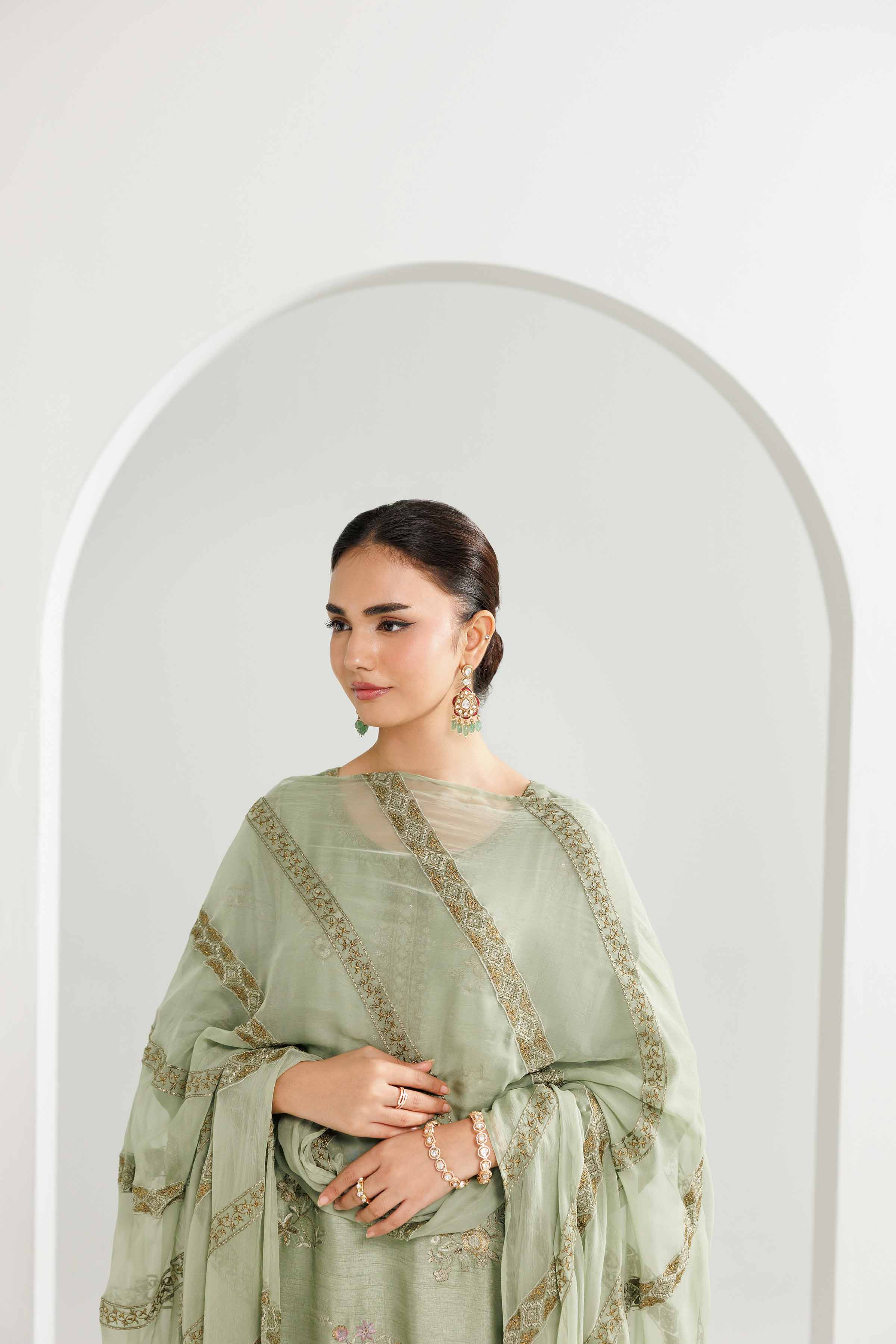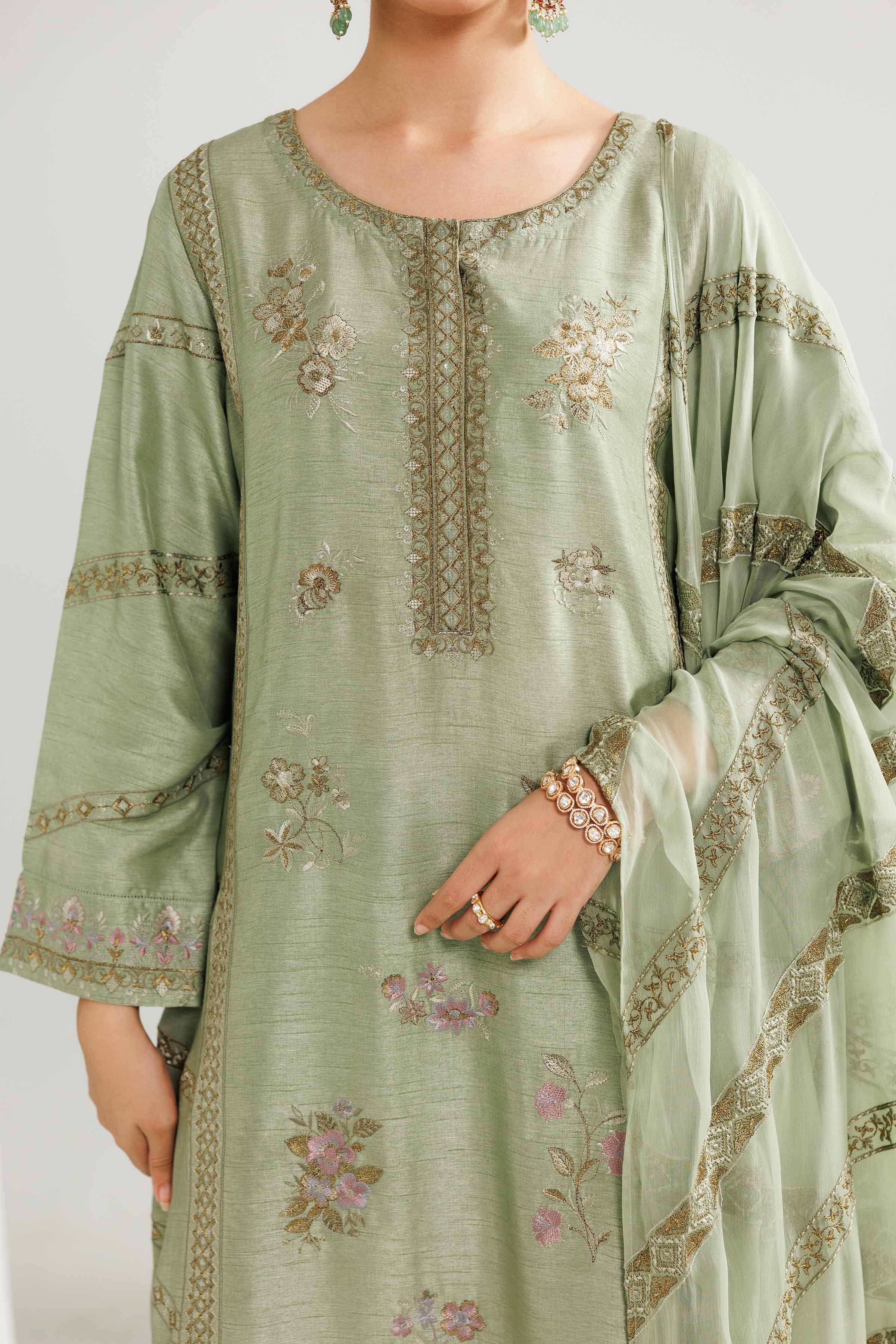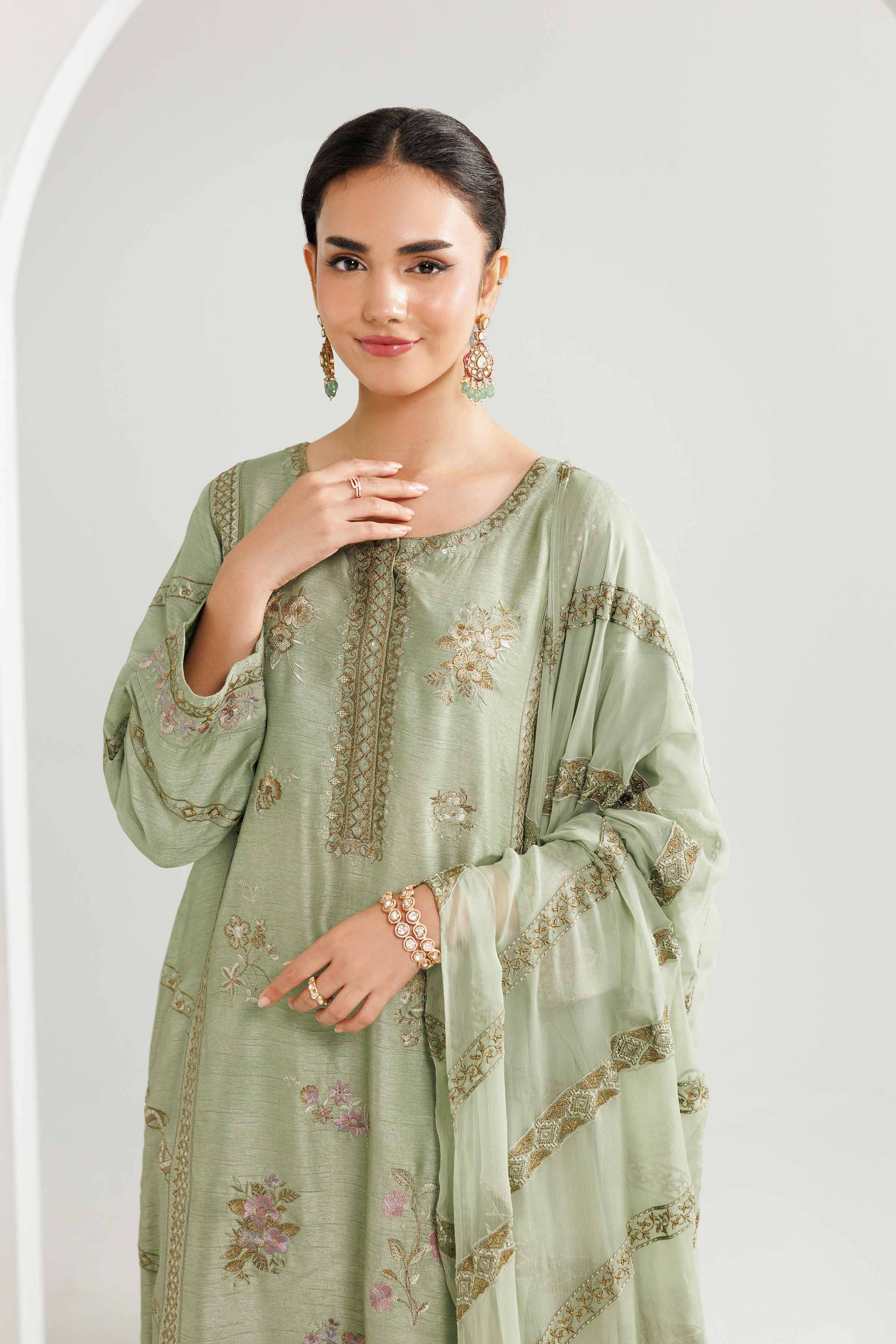 Add refined elegance to your wardrobe with this embroidered three-piece suit from the latest Rawayat Winter Collection, featuring intricate detailing.