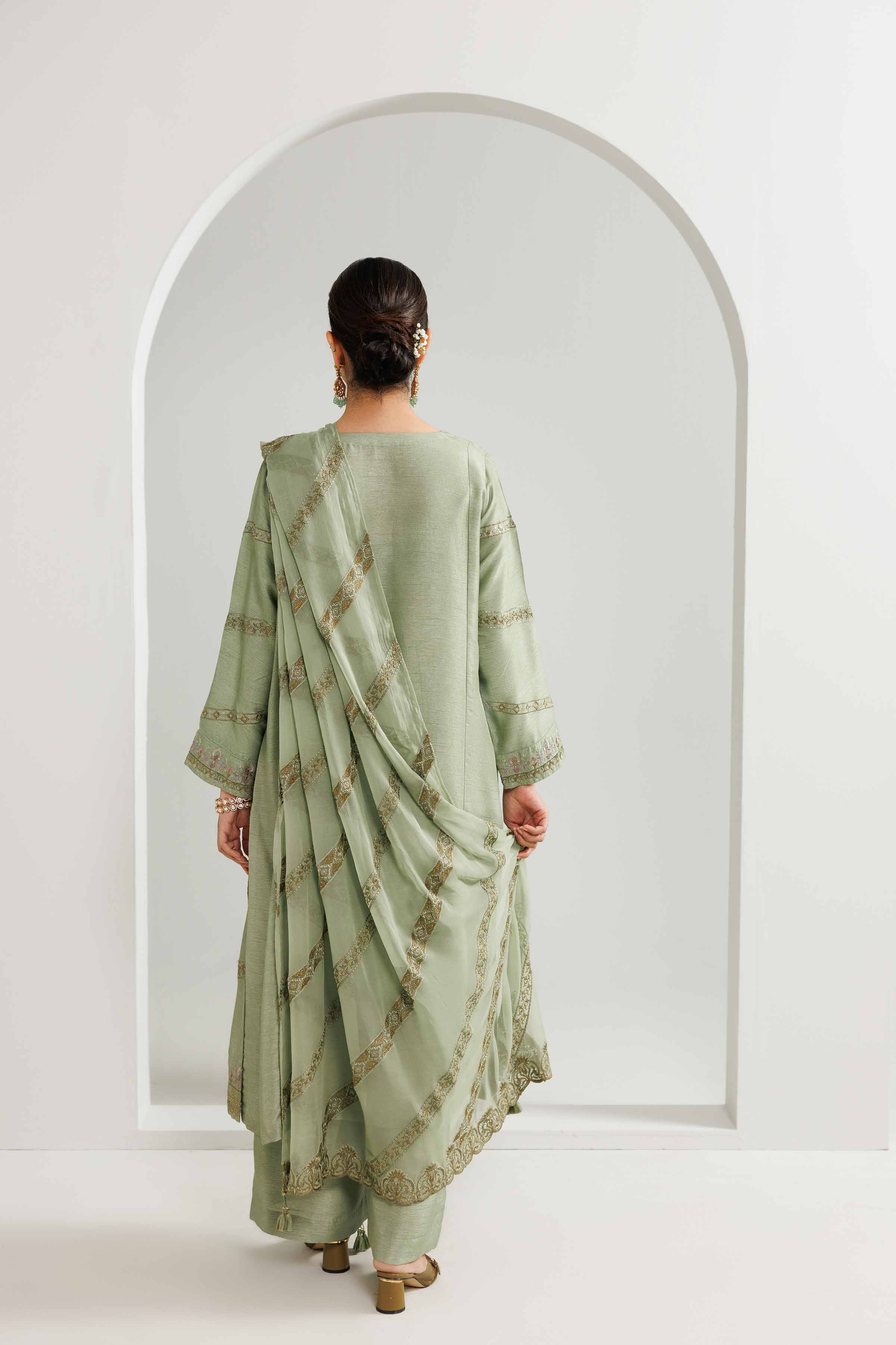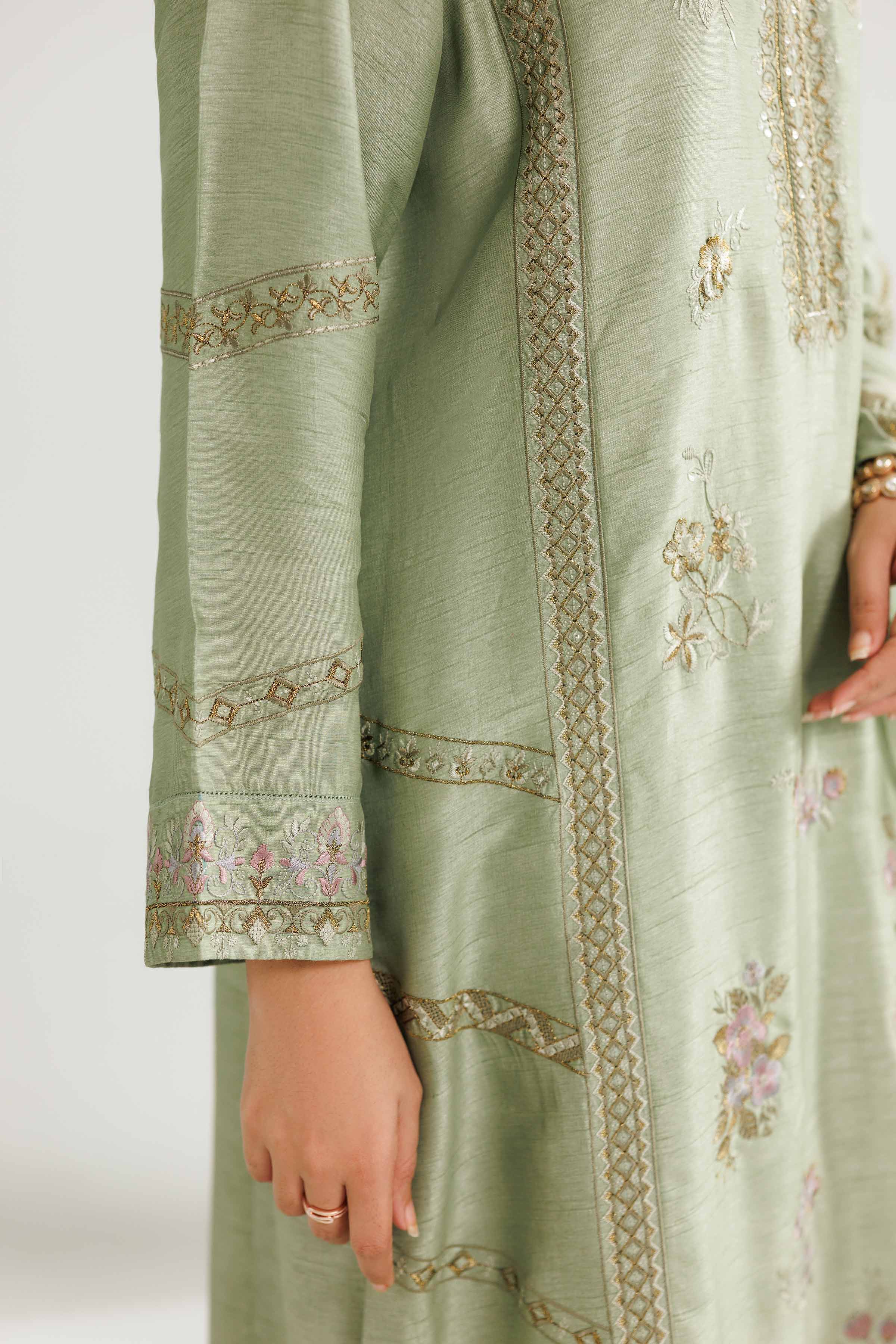 Silk Side Panel Long Embroidered Shirt featuring Full sleeves.