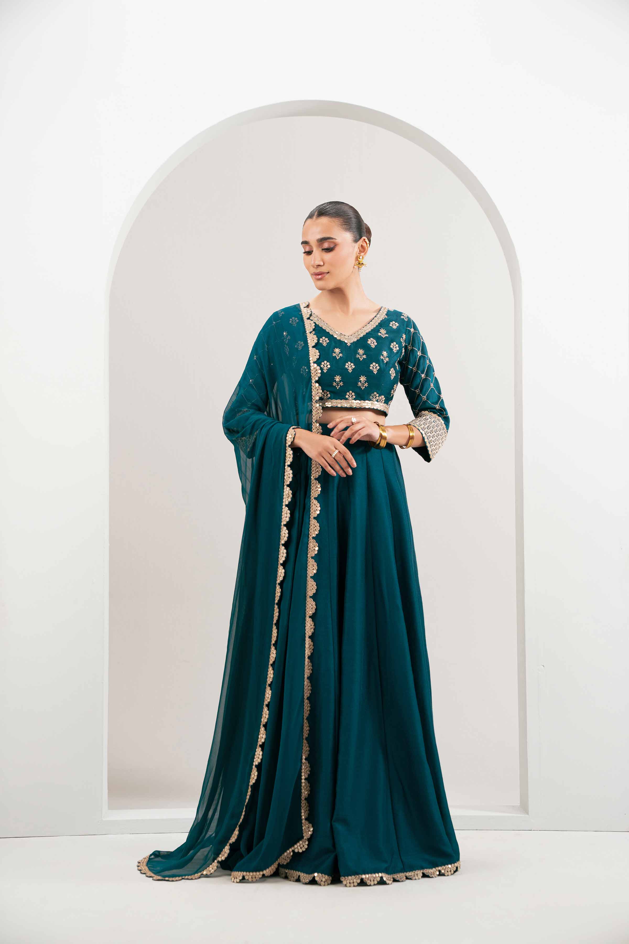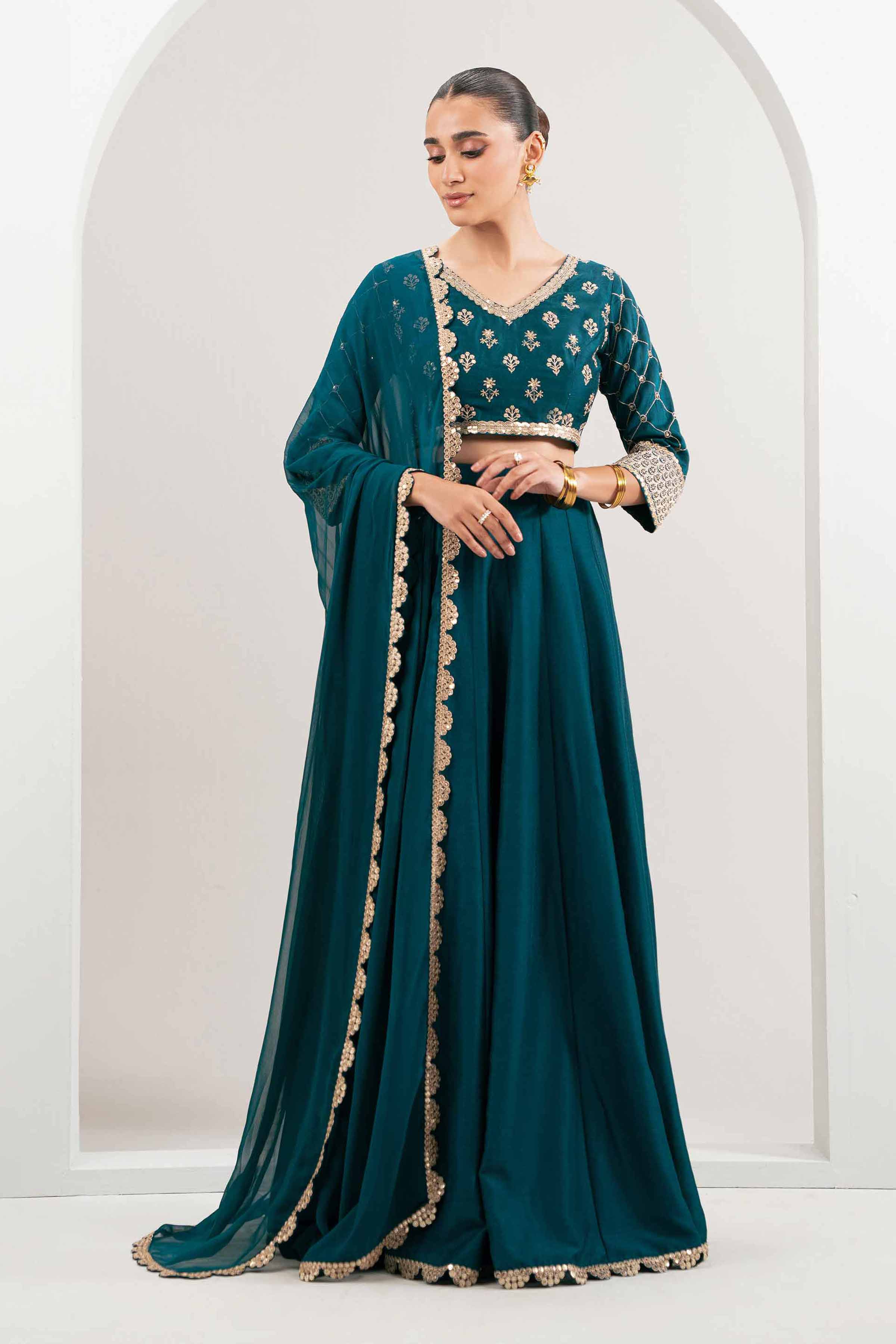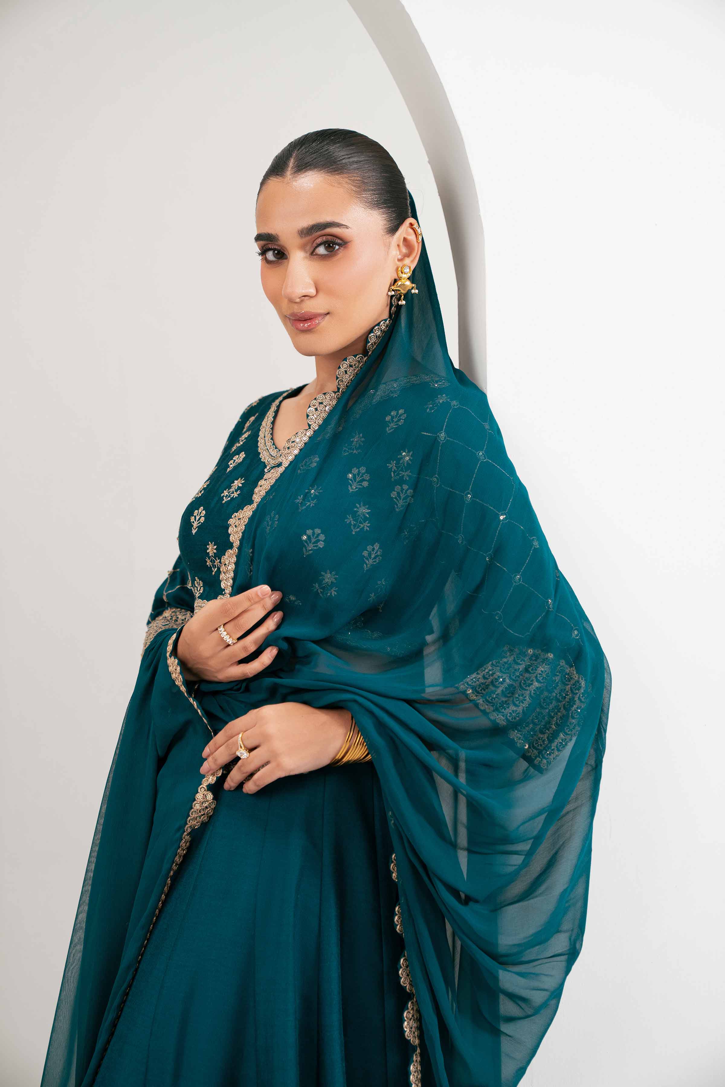 Effortlessly capture hearts with our embroidered three-piece suit from the latest Noori Winter Collection, featuring intricate detailing and timeless elegance for a graceful look.