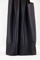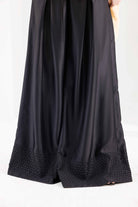 Silk stand alone pleated trousers enhanced with embroidery on the hem.