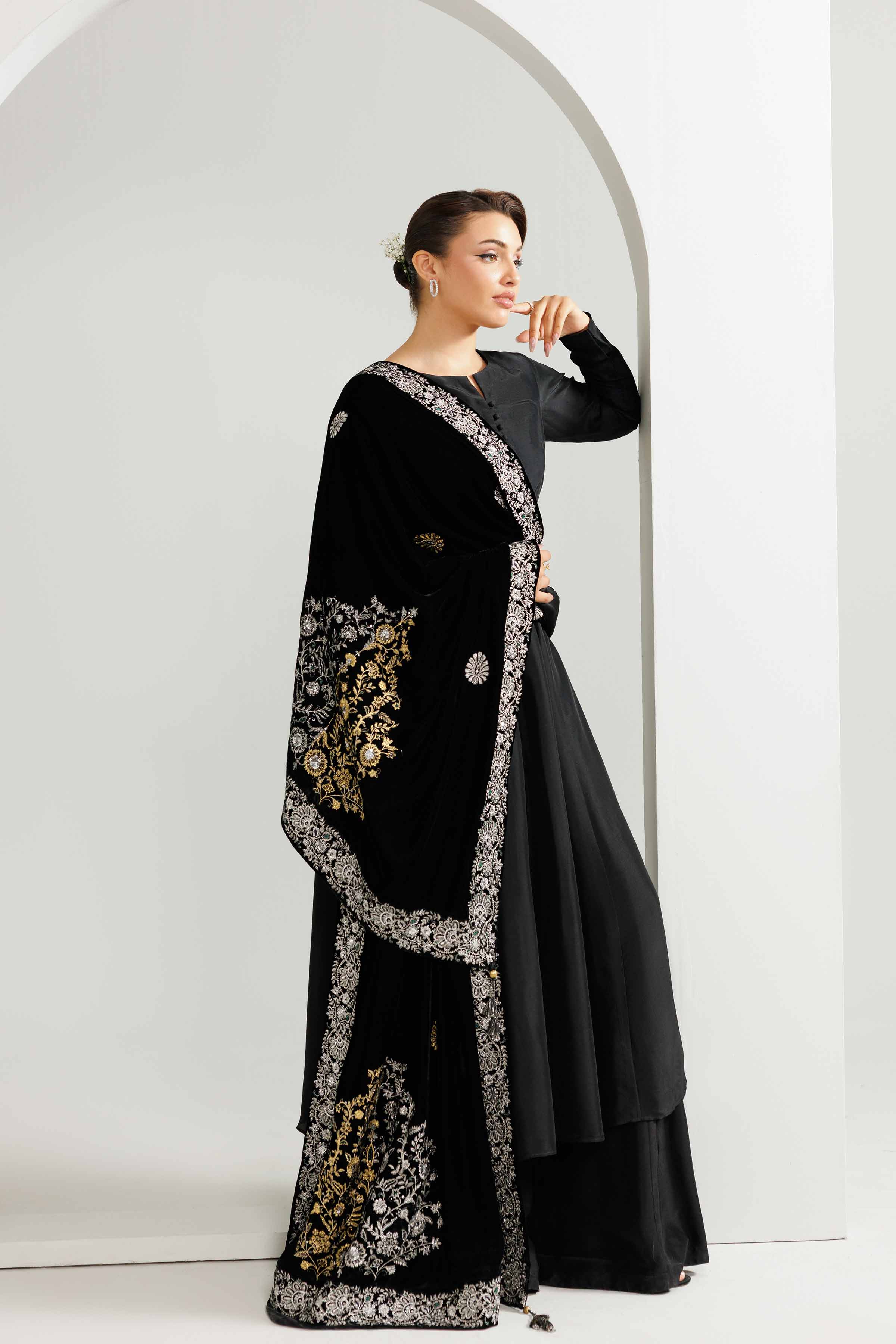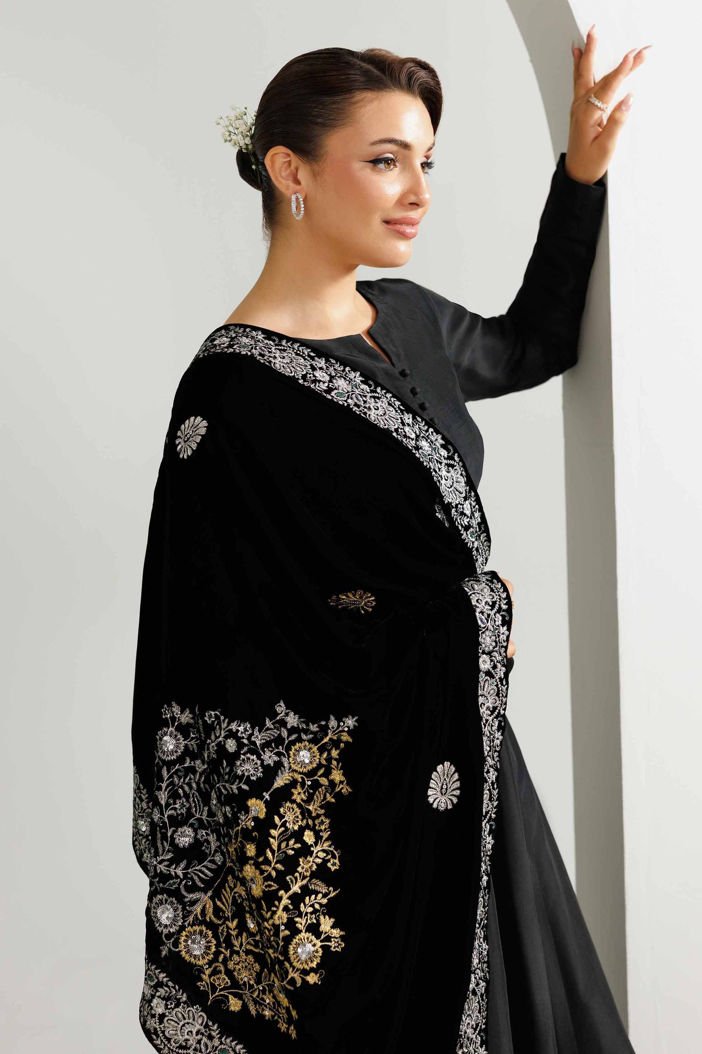 Elevate your winter look with this embroidered shawl from the latest Zar Winter Collection, blending elegance with cozy charm.